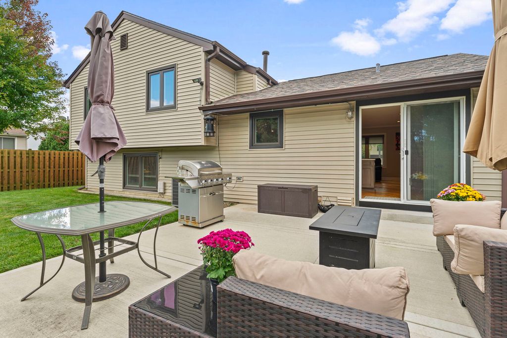 Did someone say, fenced in big back yard? New open kitchen? New doors and floors? New backyard patio, freshly poured concrete? Or a NEW HVAC SYSTEM?? Transferred owners will miss their home with so much newness! Is newness a word?Located in a quiet tree-lined street, this lovely updated home has so much to offer! The property features updated amenities, including a new furnace and air conditioning system in 2025. New bathrooms, natural hand scraped hickory flooring on main level, an open floor plan with recessed lighting on dimmers for setting the perfect mood and an automatic gas start fireplace that warms the lower level on cozy nights. The new kitchen is stunning, the 8X4 quartzite island with custom pendants, storage and seating for 4 is open on the main level. Easy to host friends and family in this home. There are tons of upper and lower-level white custom cabinets and plenty of counter space for prepping family meals. One entire wall of double stacked cabinets makes this the perfect pantry. The upper level of this home offers three large bedrooms with customized closets and a new hall bath with an extra deep tub with bubble jets. Neutral decor is found inside and out. The home is situated in a quiet cul-de-sac location and boasts a large, 6 FT fenced-in yard with a new concrete patio. Additional custom lighting is found here for entertaining late into the evening. The property benefits from the local school district, which includes Hawthorn Schools and Vernon Hills High School. Walk to parks, library, pools and water parks and all neighborhood elementary schools. Updates throughout the home include a new roof, new concrete patio, new garage door with touch pad and door opener. New windows, as well as new siding and doors provide a well-maintained and modern living environment. This Home Is Move in Ready.