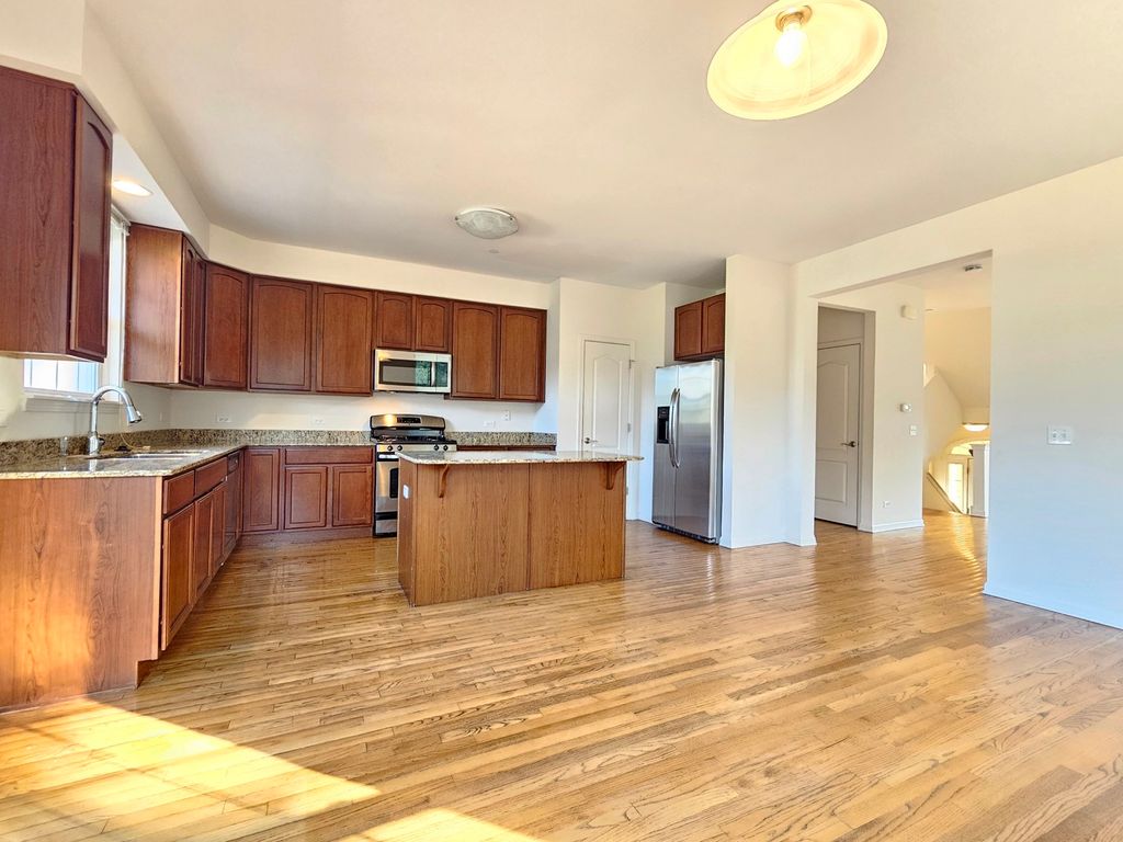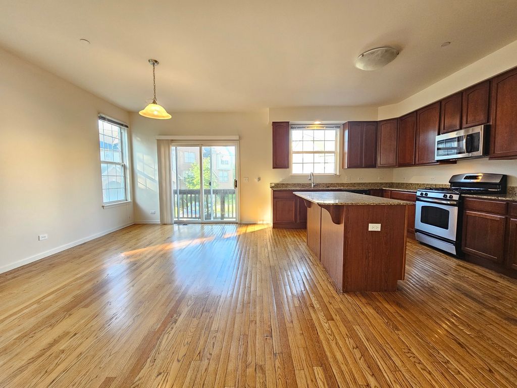 This stunning contemporary townhome offers an idyllic setting facing a serene forest preserve and natural surroundings. Boasting 2,024 square feet spread across three meticulously designed levels, this residence features three bedrooms and 2.5 bathrooms. The main level impresses with its expansive living and dining area, complemented by an open kitchen featuring granite countertops, a spacious island, and 42-inch kitchen cabinets. Stainless steel appliances enhance the kitchen's modern appeal, while hardwood floors lend a touch of elegance throughout. The primary suite exudes comfort and style with its generous proportions and walk-in closet, while convenience is elevated with second-floor laundry facilities. The lower level presents a versatile space ideal for a den or guest room, alongside separate storage and a 2.5-car garage. Nestled in a prime end-unit location, this townhome offers easy access to amenities and attractions, including renowned restaurants at Randhurst Village. With proximity to major thoroughfares such as 294, convenience meets luxury in this exceptional offering.
