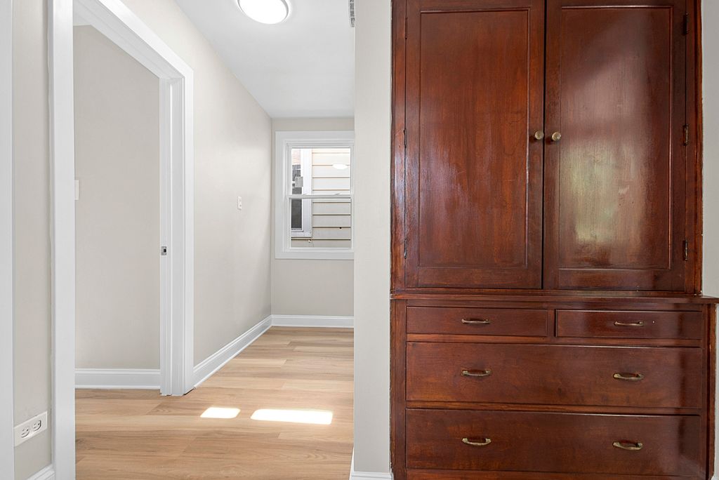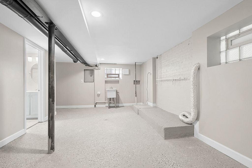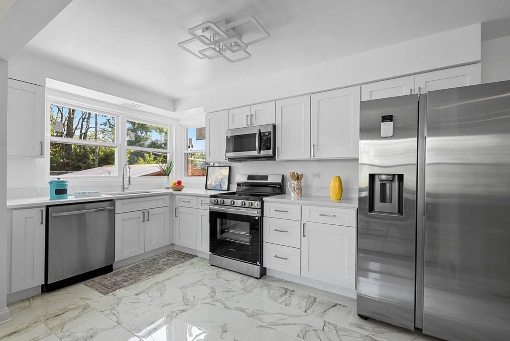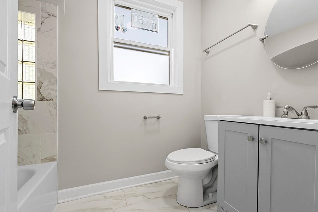 Step into this completely remodeled home where every detail has been thoughtfully updated to offer modern comfort, functionality, and timeless style. From top to bottom, this residence showcases high-quality finishes and a move-in-ready experience. This home also includes a number of major upgrades for peace of mind and long-term value, including new central A/C, new tear-off roof, all new windows, new hot water heater, updated electrical with a new circuit panel, and a new oversized concrete slab in the backyard, ideal for extra parking or outdoor entertaining. The main floor features fresh paint throughout, new luxury vinyl flooring, and all new doors, creating a clean and fresh look. The open-concept living room is both welcoming and stylish, highlighted by a new bay window, refinished fireplace, recessed lighting, and crown molding. The adjoining dining room continues the luxurious vinyl flooring and includes a ceiling fan for added comfort. The beautifully updated kitchen is a true showstopper, featuring porcelain tile flooring, quartz countertops, soft-close cabinetry, new stainless steel appliances, a new stainless steel sink, and modern light fixtures. Just off the kitchen, the bright and airy sunroom with a large bay window offers a perfect space for morning coffee or relaxing with plenty of natural light. An updated powder room completes the main level. Upstairs, you'll find three spacious bedrooms and a completely remodeled full hall bathroom, boasting updated tile work and fixtures for a fresh, clean finish. The full basement offers additional living space with a newly added full bathroom featuring stylish tile and a new vanity. A walk-out to the backyard adds convenience and flexibility, perfect for entertaining or future expansion. This home offers the perfect blend of modern updates and everyday comfort-don't miss your chance to own this turn-key gem!