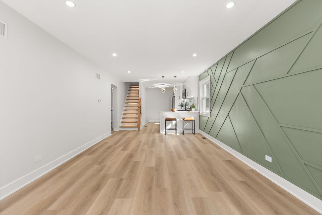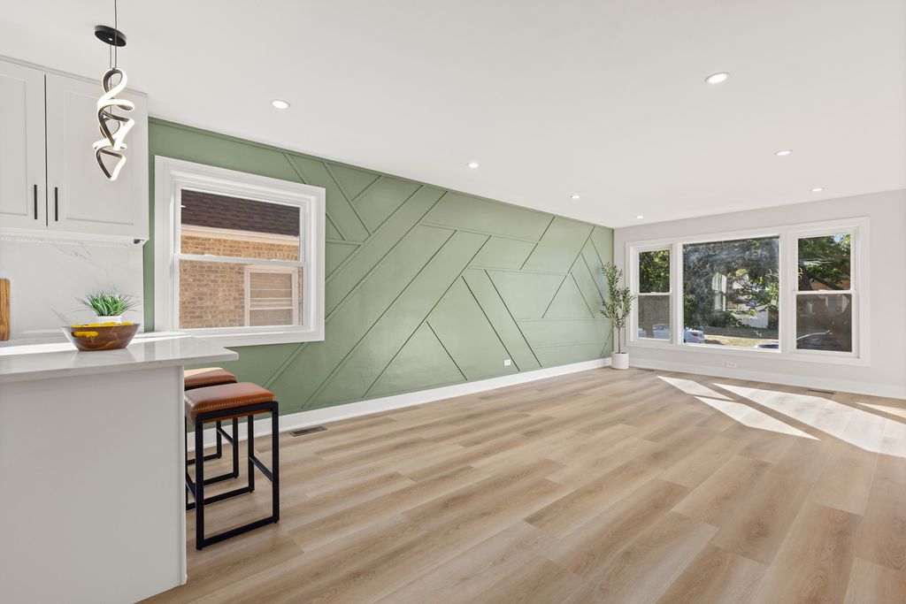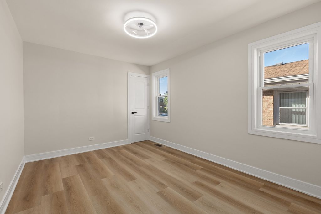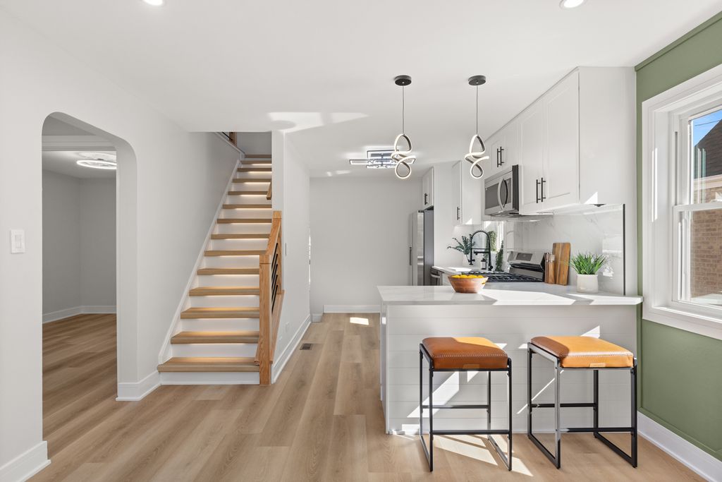 Welcome to your dream home, a stunning 3-bedroom, 2-bathroom home fully renovated with distinctive features that redefine modern living. This move-in-ready home combines modern systems, energy efficiency, and stylish design, making it a great pick for buyers looking for comfort and quality in a fantastic neighborhood. Every inch of this home has been thoughtfully crafted to captivate and inspire. Step into the open-concept living, dining, and kitchen area, where brand-new energy-saving windows flood the space with natural light, creating a warm and inviting atmosphere. The entire home has commercial-grade vinyl plank flooring, delivering unmatched durability and elegance that flows seamlessly throughout. The kitchen is a showstopper, featuring lighting under cabinets at both the top and bottom, with motion sensor lighting at the base for a striking ambiance, paired with sleek black hardware. The bathrooms elevate the style with chic black and gold hardware, adding a touch of luxury. This home's core systems have been completely overhauled for peace of mind. New electrical wiring runs to every outlet and switch, ensuring safety and reliability. A new AC and furnace, paired with updated ductwork, provide year-round comfort, while new plumbing throughout guarantees worry-free living. The upper-floor primary bedroom is a true retreat, featuring a spacious bonus room perfect for a home office, nursery, or private lounge. Two well-appointed bedrooms on the main floor, separate from the primary bedroom, complement the layout, with a full bathroom on the main floor and another in the basement for ultimate convenience. The fully finished basement is a standout, boasting a bonus room ideal for an office or storage, an oversized utility room, and a separate laundry room, adding functionality to this already impressive home. Unique features elevate this property to the next level. A custom feature wall adds bold, artistic flair, while night motion sensor lighting on stairs and under cabinet bases enhances safety and style. Motion sensor closet lighting makes organization effortless, and custom-built oak wood railings exude timeless craftsmanship. Ceiling fans with integrated LED lighting and remote controls deliver comfort and efficiency, creating a perfect balance of form and function. The fully fenced-in backyard is ideal for pets, play, or entertaining. This home is packed with thoughtful details that make everyday living extraordinary. From top to bottom, every element reflects quality and care, designed to impress. This home was renovated by a dedicated father-and-son business specializing in transforming homes with high-quality craftsmanship. Their expertise ensures this property is a safe and move-in-ready home for its new owners. Conveniently located near shopping, dining, O'Hare Airport, public transportation, and major highways, this home offers easy access to the city and surrounding suburbs. Don't miss this one-of-a-kind home blending modern luxury with practical upgrades-schedule your showing today!