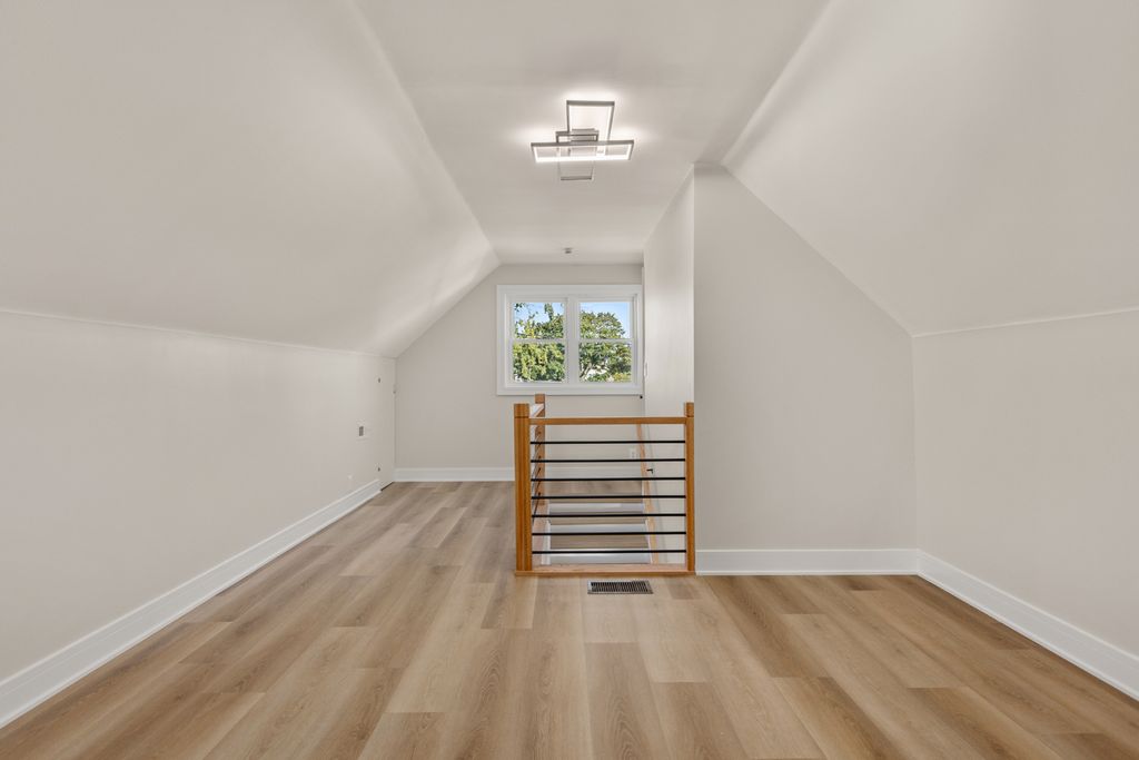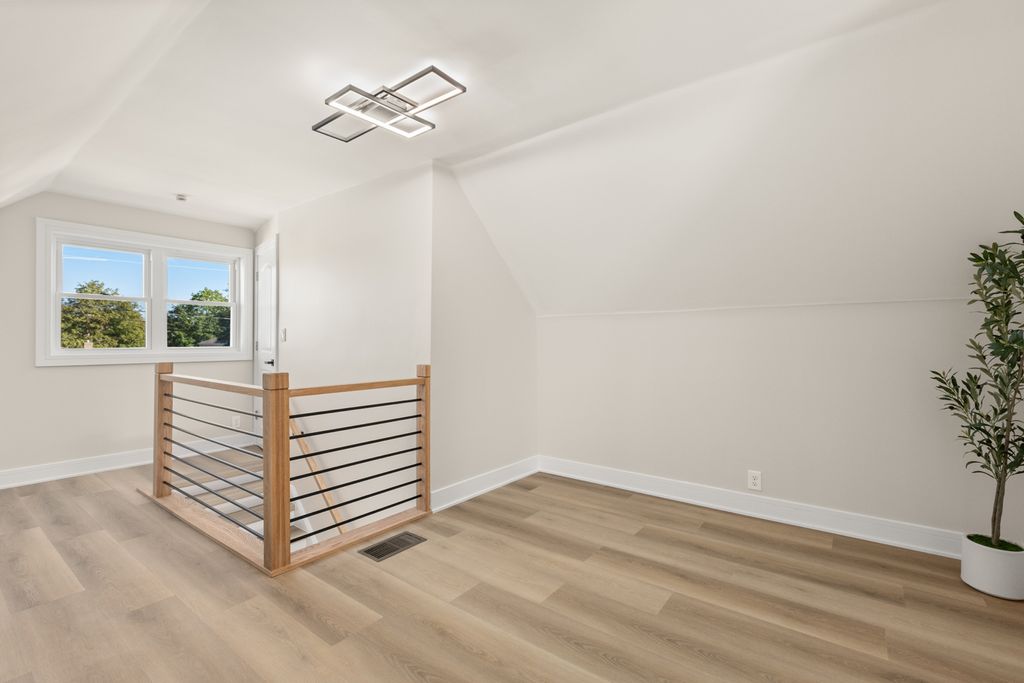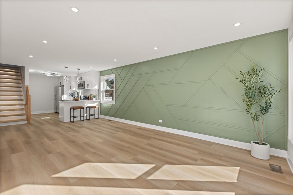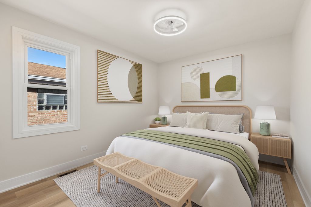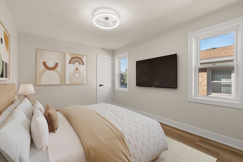 Welcome to your dream home, a stunning 3-bedroom, 2-bathroom home fully renovated with distinctive features that redefine modern living. This move-in-ready home combines modern systems, energy efficiency, and stylish design, making it a great pick for buyers looking for comfort and quality in a fantastic neighborhood. Every inch of this home has been thoughtfully crafted to captivate and inspire. Step into the open-concept living, dining, and kitchen area, where brand-new energy-saving windows flood the space with natural light, creating a warm and inviting atmosphere. The entire home has commercial-grade vinyl plank flooring, delivering unmatched durability and elegance that flows seamlessly throughout. The kitchen is a showstopper, featuring lighting under cabinets at both the top and bottom, with motion sensor lighting at the base for a striking ambiance, paired with sleek black hardware. The bathrooms elevate the style with chic black and gold hardware, adding a touch of luxury. This home's core systems have been completely overhauled for peace of mind. New electrical wiring runs to every outlet and switch, ensuring safety and reliability. A new AC and furnace, paired with updated ductwork, provide year-round comfort, while new plumbing throughout guarantees worry-free living. The upper-floor primary bedroom is a true retreat, featuring a spacious bonus room perfect for a home office, nursery, or private lounge. Two well-appointed bedrooms on the main floor, separate from the primary bedroom, complement the layout, with a full bathroom on the main floor and another in the basement for ultimate convenience. The fully finished basement is a standout, boasting a bonus room ideal for an office or storage, an oversized utility room, and a separate laundry room, adding functionality to this already impressive home. Unique features elevate this property to the next level. A custom feature wall adds bold, artistic flair, while night motion sensor lighting on stairs and under cabinet bases enhances safety and style. Motion sensor closet lighting makes organization effortless, and custom-built oak wood railings exude timeless craftsmanship. Ceiling fans with integrated LED lighting and remote controls deliver comfort and efficiency, creating a perfect balance of form and function. The fully fenced-in backyard is ideal for pets, play, or entertaining. This home is packed with thoughtful details that make everyday living extraordinary. From top to bottom, every element reflects quality and care, designed to impress. This home was renovated by a dedicated father-and-son business specializing in transforming homes with high-quality craftsmanship. Their expertise ensures this property is a safe and move-in-ready home for its new owners. Conveniently located near shopping, dining, O'Hare Airport, public transportation, and major highways, this home offers easy access to the city and surrounding suburbs. Don't miss this one-of-a-kind home blending modern luxury with practical upgrades-schedule your showing today!