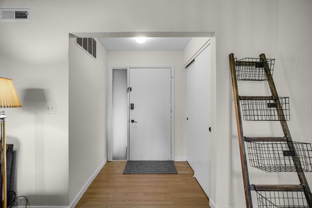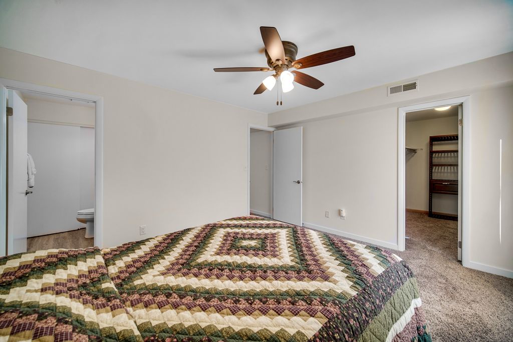 Beautifully Updated 2nd Floor Unit with Scenic Views. This spacious, move-in ready 2nd floor condo offers the perfect blend of comfort, style, and privacy. Enjoy high ceilings, abundant natural light, and peaceful views of nature from every window. Enter through your private entrance into a welcoming foyer with large coat closet. The dramatic living room with high ceilings features sliding doors leading to a private balcony, offering year-round greenery and serenity. A bright formal dining area makes entertaining easy. The completely renovated eat-in kitchen boasts custom cabinetry with pull-out drawers, granite countertops, ceramic backsplash, deep sink, new lighting, and flooring. A dedicated laundry room includes full-size washer/dryer and extra shelving. Both bedrooms have ceiling fans, while the primary suite features a spacious walk-in closet. Updated bathrooms offer new flooring, modern vanities, fixtures, shower walls, and lighting. Additional upgrades include white trim/doors, new switches and outlets. Extras: Shared garage with storage, guest parking, and beautifully maintained grounds. Water, sewer and trash included in monthly assessment. Just unpack and enjoy-this one checks all the boxes!