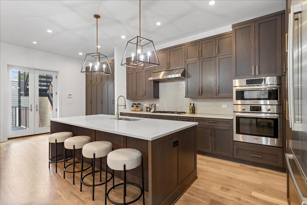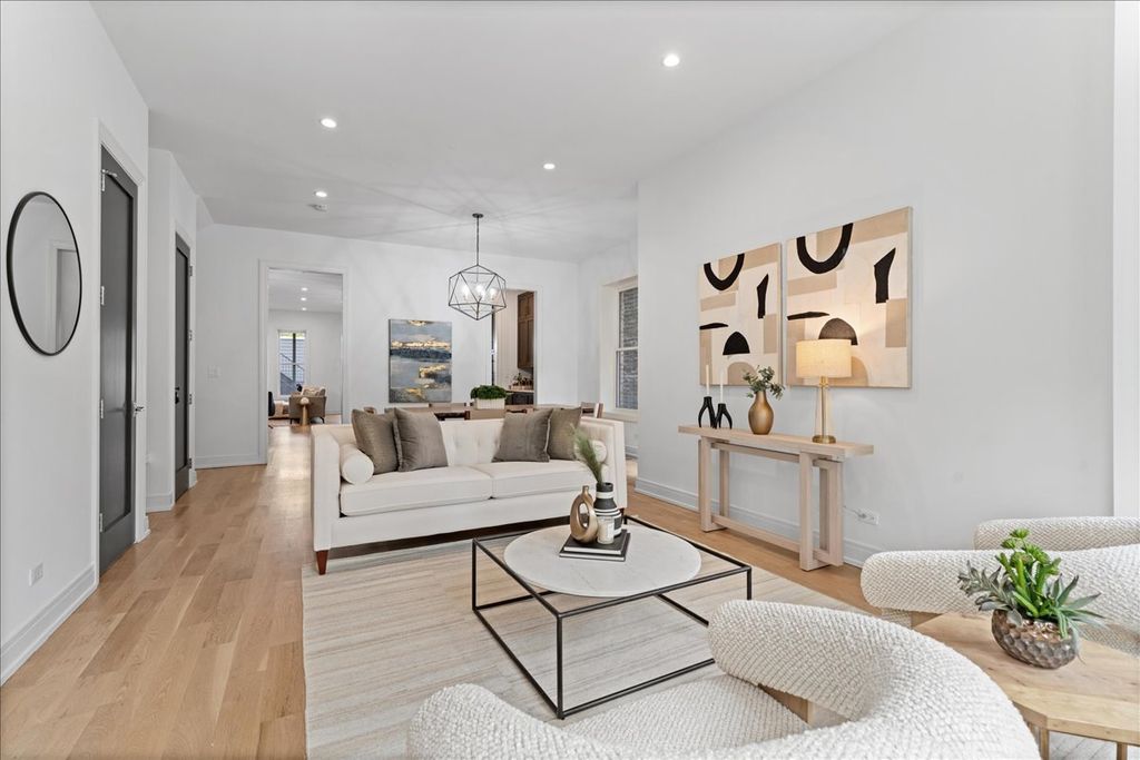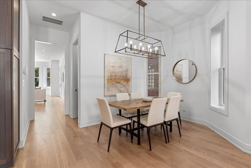 Experience classic architecture and modern living in this beautifully renovated (2018) Chicago Greystone. Situated on an oversized 30' lot, this spacious 3-bedroom, 3.5-bathroom duplex offers exceptional design, natural light, and abundant space for entertaining and everyday living. A dramatic bay window fills the living and dining rooms with natural light. The chef's kitchen features Bosch professional appliances, a large island, butler's pantry with beverage center, and a walk-in pantry. A dedicated breakfast room and adjoining family room flow seamlessly to a huge composite deck, ideal for grilling and entertaining. The lower level includes radiant heated floors, a bonus recreation room and three en-suite bedrooms. The primary suite impresses with a walk-in closet and spa-like bathroom boasting an oversized steam shower, soaking tub and dual vanity. The entire home features freshly refinished hardwood floors, new carpet and fresh paint. Additional highlights include one garage parking space, shared backyard, and abundant closet space. Situated on a quiet one-way street, just steps from Union Park, West Loop dining, the United Center, public transit (Pink/Green lines & bus), and expressways, this home offers an unmatched lifestyle with easy access to all your needs!