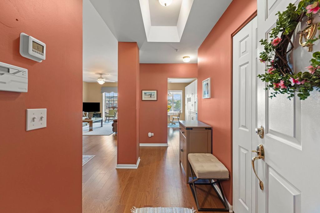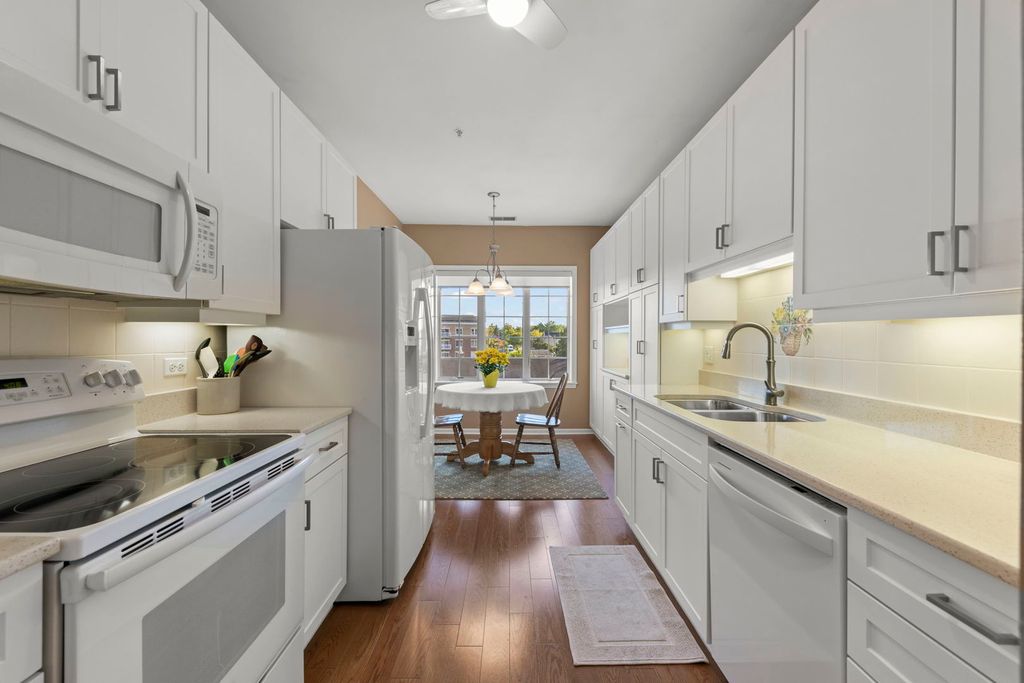Bathed in natural light, this fifth-floor residence at the Glen Astor Condominiums captures the essence of timeless comfort and in-town sophistication. Inside, graceful wood floors, 9-foot ceilings, and expansive south-facing windows create an airy, inviting ambiance. The kitchen's crisp white shaker cabinetry, quartz countertops, and cheerful breakfast nook set a classic tone that feels both elegant and enduring. The Primary Suite provides a private retreat with a walk-in closet and en-suite bath, while the balcony offers a tranquil spot to enjoy sun-filled views of downtown Glen Ellyn. Thoughtful amenities - including a heated garage space, nearby storage locker, and secure building access - make daily living effortless. Just steps from charming cafes, fine dining, boutique shopping, and the Metra station, this home offers a rare opportunity to live beautifully in the very center of Glen Ellyn's vibrant village life.