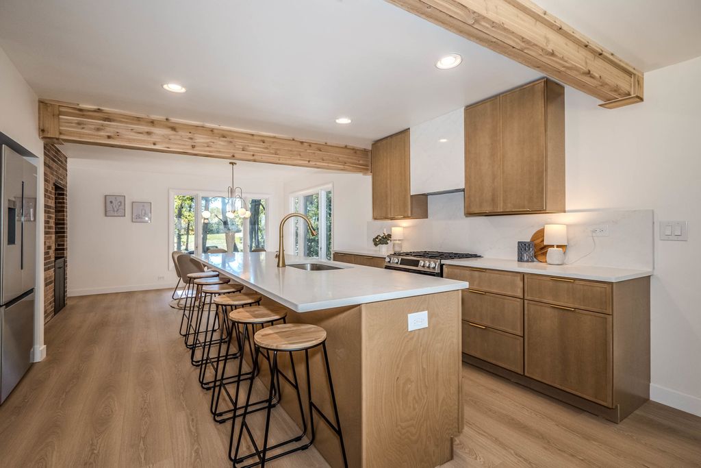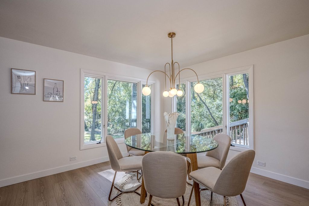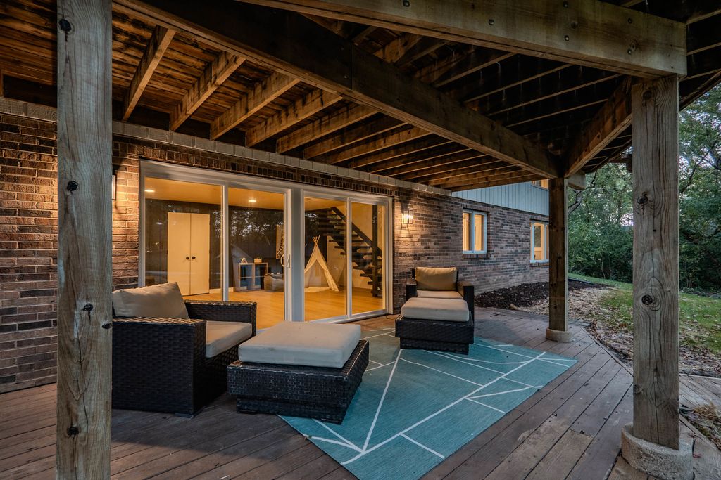 AMAZING TRANSFORMATION! You have to see it to believe it! A masterpiece remodel elevates this home to magazine worthy status. Treat yourself to this mid-century walk-out ranch on just over an acre in the St. Charles School District. You will love the sleek new kitchen showcasing stunning cabinetry, stylish countertops & top of the line appliances. Each of the three bathrooms is completely renovated, featuring modern on-trend finishes. The former breezeway has been transformed into a functional living space, now serving as the ideal mudroom. It includes a new washer & dryer, with convenient access to the garage, 2nd front entry & wraparound deck. Enjoy the expansive, renovated kitchen featuring an impressive 10' island with space for dining as well as an informal table. Imagine yourself in the heart of the home - the Great Room! Relax beneath the vaulted, beamed ceiling & take in the stunning wall of windows that fill the space with natural light. Adding to the charm is the two sided brick wall, with a wood burning fireplace serving as the warm & welcoming focal point. A sliding door invites you onto the raised deck, where you can enjoy views of the lush back yard. The walkout lower level is designed to exceed expectations. Enjoy the spacious family room featuring a second wood-burning fireplace. This level also includes a fourth bedroom with an adjacent full bath, a versatile den or office, and an expansive storage and workshop area. In addition to the attached two car garage there is an additional detached 2.5-car garage which is 24x26 and offers 10' ceilings. The lush backyard is graced with majestic century-old oak trees & includes the added convenience of a second driveway. For peace of mind some of the newer items are: roof, oversized gutters & downspouts, all new grading in the front includes 8 semi's of fresh dirt, hot water heater, new pressure tank, all new flooring, Pella sliding door in lower level, recessed lighting throughout, all new flooring, trim, hardware, entire kitchen, bathrooms, garage door, designer lighting and more. Don't miss out on this beauty right out of a magazine!