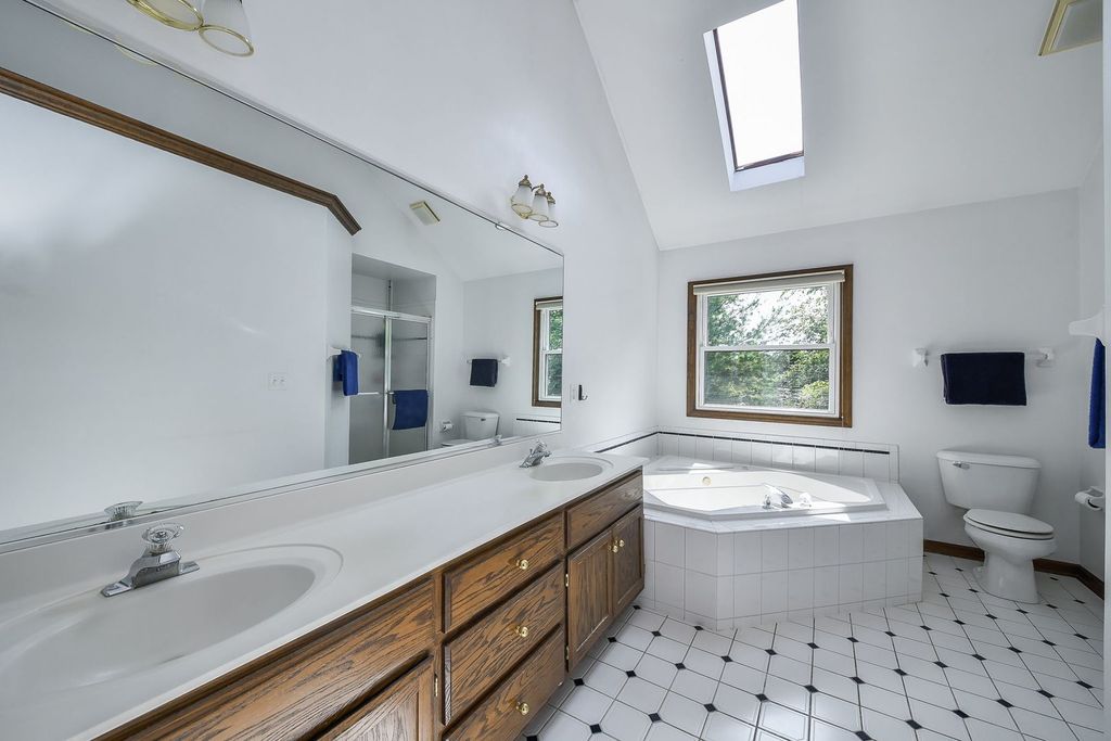 Enjoy over 2,300 square feet of beautifully finished living space in this light-filled, move-in-ready Home. The heart of this home is a generous kitchen featuring white cabinetry, a center island with seating, and stainless-steel appliances. The kitchen flows seamlessly into the vaulted family room, where soaring ceilings, abundant windows and skylights and a striking brick fireplace create a warm and inviting gathering space. Brand-new carpet leads upstairs to the private Master suite, complete with a spacious walk-in closet and a very spacious bath with vaulted ceilings, dual sinks, whirlpool tub, shower, and skylights that fill the space with natural light. The partially finished lower level adds a versatile fifth bedroom, recreation area, and ample storage. Outside, enjoy a paver patio and additional storage shed in the backyard-perfect for relaxing or entertaining. Key updates include HVAC (2007), roof (2008), windows (2009), and siding (2019). Conveniently located on Batavia's sought-after West side, it's close to BHS, Shopping, Entertainment and more!