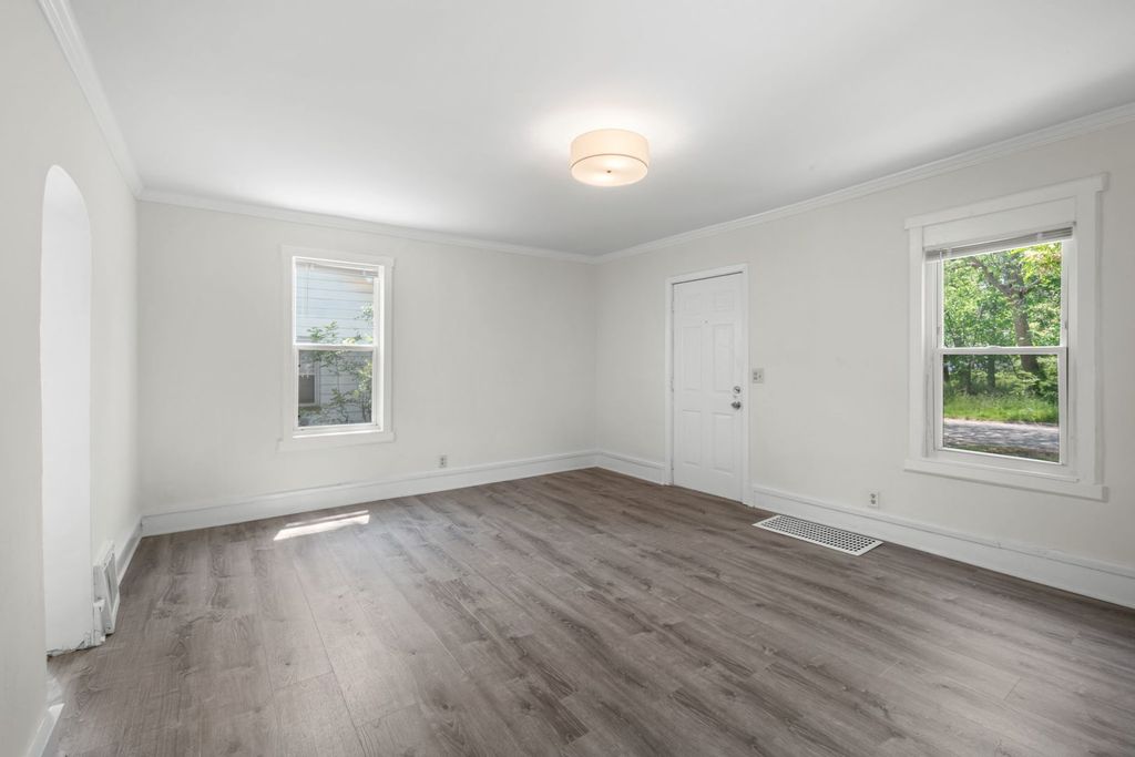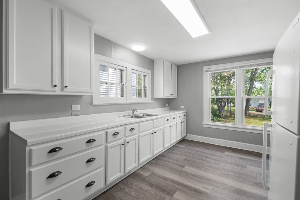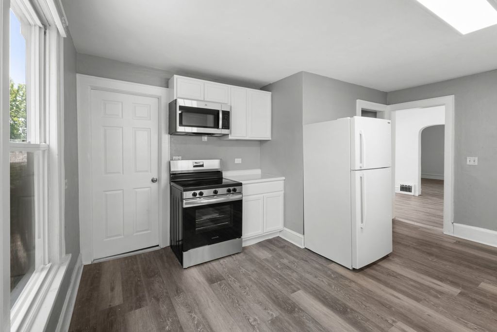 Freshly updated and full of character, this 2-bedroom, 1.5-bath home offers a blend of charm and functionality across two levels. Step inside to find a bright and airy layout with crisp white walls, updated lighting, and brand-new luxury vinyl plank flooring throughout the main level. The living and dining areas flow easily into a spacious kitchen that features ample cabinetry, sleek countertops, a brand-new stainless steel range and microwave, and a walk-in pantry just off the kitchen for convenient storage. The main floor full bathroom is stylishly renovated with modern fixtures and a striking tile surround, along with a refinished tub and updated lighting over a new mirror. Upstairs, the half bath includes a new vanity and modern lighting above a new mirrored medicine cabinet. An additional upstairs room offers flexibility for a home office, studio, or creative space. The full unfinished basement houses the laundry area and provides excellent space for storage or future customization. Important updates include a brand-new furnace and water heater, both installed in 2025. Outside, enjoy the home's classic exterior details, private driveway, and a manageable yard ready for your personal touches. Move-in ready and refreshed throughout, this home offers comfort, versatility, and thoughtful improvements inside and out.
