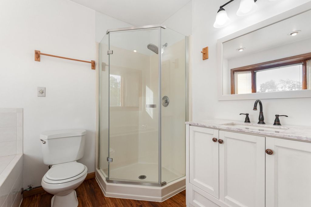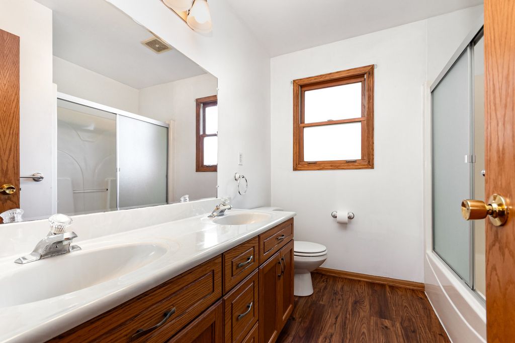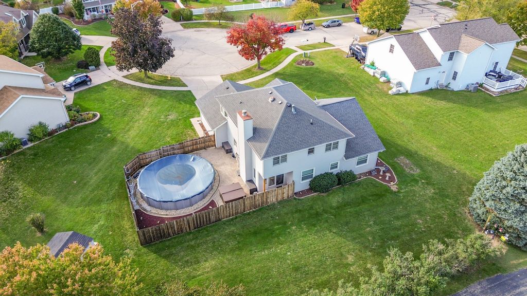 Welcome to this spacious home, nestled on a cul-de-sac. This beautifully maintained 5-bedroom, 2.5-bath home offers comfort, space, and charm. The inviting front porch welcomes you inside to a large spacious living room with vaulted ceilings and plenty of natural light. The eat-in kitchen provides the perfect spot for family meals and opens to a warm and inviting family room featuring a cozy fireplace and sliding doors leading to the back patio and pool area. The main floor also includes a convenient bedroom and laundry room. A lovely stairway leads upstairs to four additional bedrooms, including a large primary suite with a walk-in closet and separate vanity area. The master bathroom includes a soaking tub, and walk-in shower. The large unfinished basement offers ample room for storage or the opportunity to create additional living space. Step outside to enjoy a spacious backyard complete with an above-ground pool, relaxing hot tub, and room to entertain. An outbuilding provides extra storage for yard equipment or recreational toys, and the 2.5-car garage adds even more convenience and functionality. This home features several upgrades, including fresh paint throughout and a whole-house generator for added convenience. All pool equipment and valuable cleaning robots will also remain with the property. This home combines comfort, practicality, and outdoor enjoyment-all in the desirable Indian Trails North!