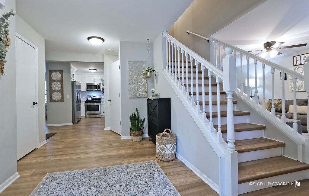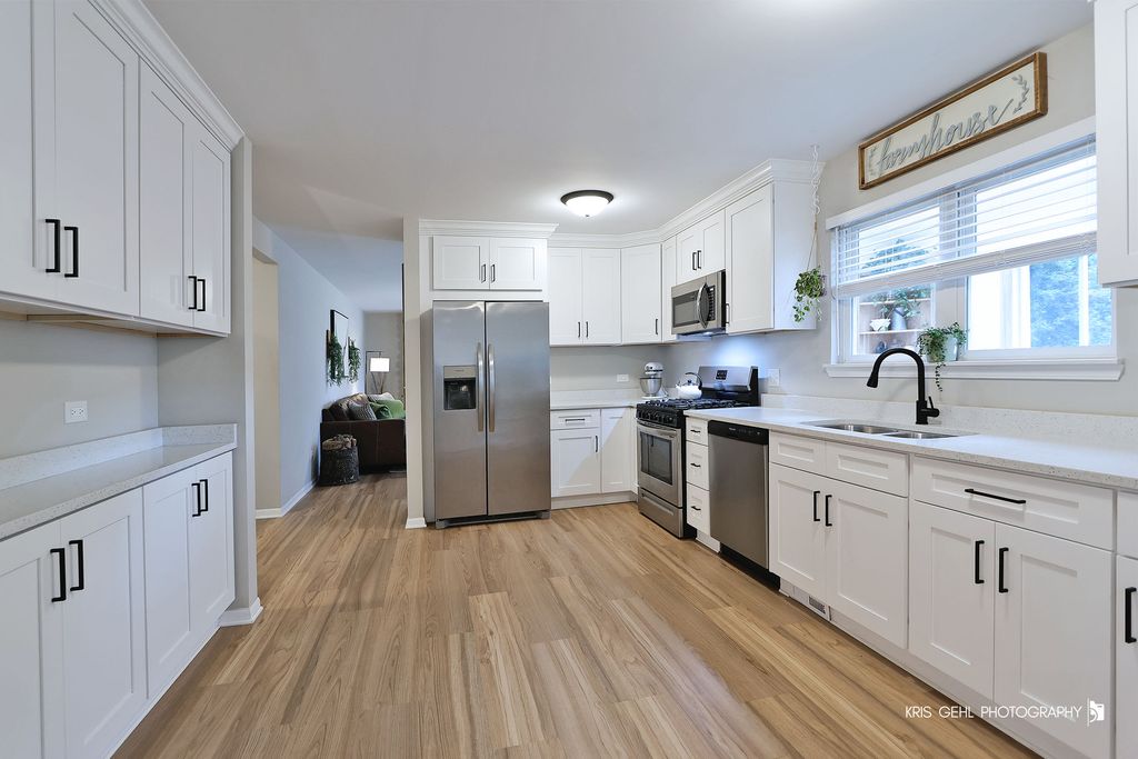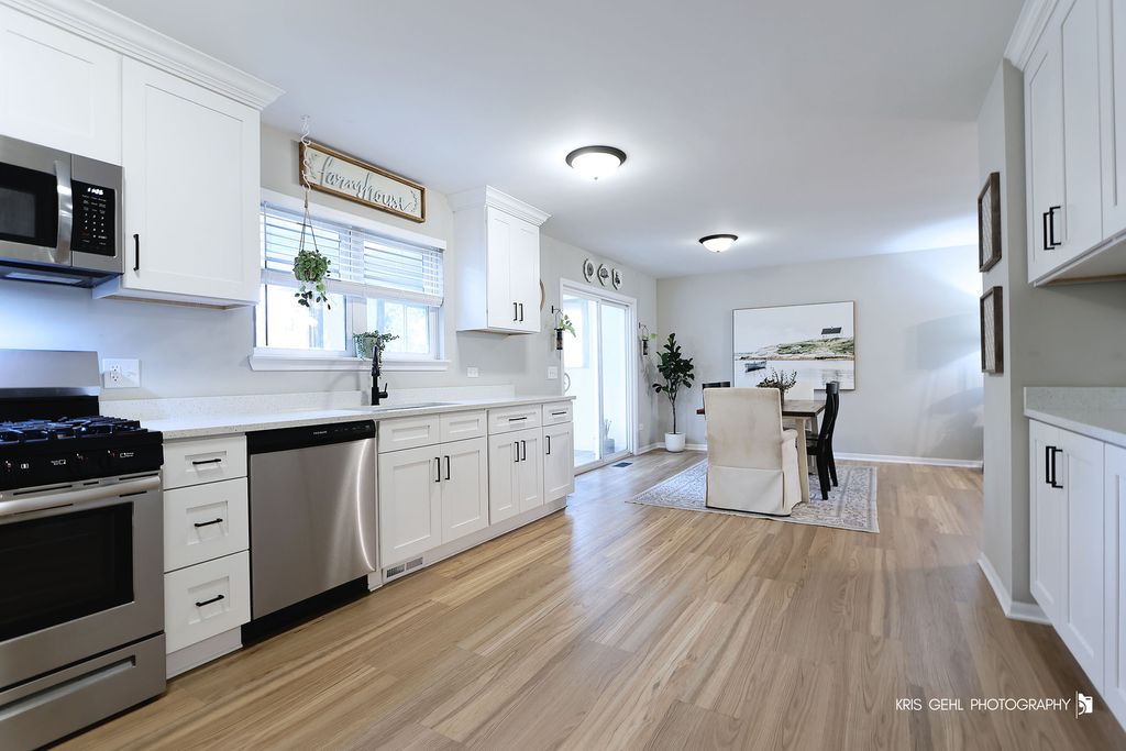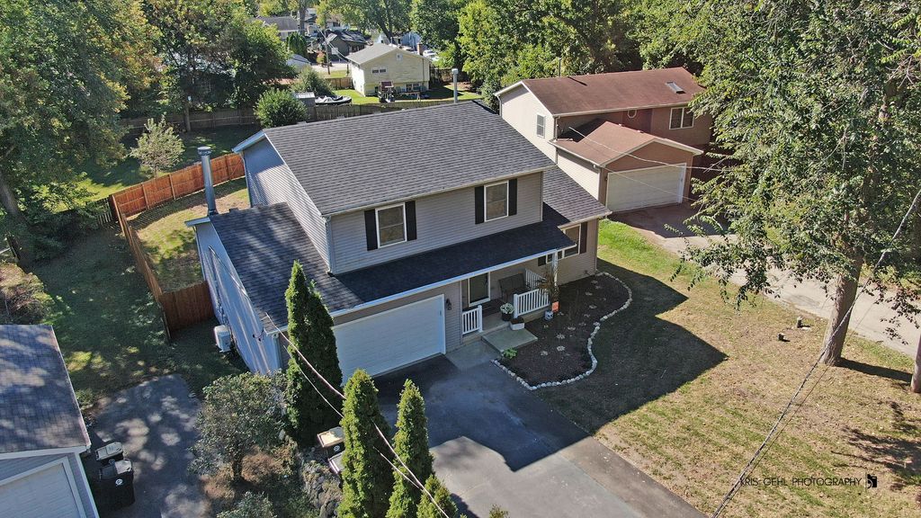 Tucked away on a quiet dead-end street, this custom-built home sits on a double lot of over half an acre with a fully fenced, newly seeded yard, offering privacy, space, and a peaceful setting. Step inside to find new luxury vinyl plank flooring, neutral decor, and a home that's meticulously maintained and styled like a model. The main level features a formal living room that flows seamlessly into a spacious eat-in kitchen with 42" white shaker cabinets, subway tile backsplash, quartz countertops, and new stainless steel appliances. A slider leads to the brand-new 3-season porch with skylights, perfect for relaxing or entertaining. The family room, anchored by a custom stone fireplace, offers a warm and inviting space to unwind. A convenient half bath completes the main level. Upstairs, you'll find three generous bedrooms and two full remodeled baths, including a primary suite with a private bath. The finished English basement adds even more living space with a fourth bedroom, half bath, and plenty of room for recreation, work space or guests. Modern touches like matte black fixtures and hardware blend beautifully with recent updates, including a new roof, furnace, A/C, water softener, LVP floors, and fencing-so all the big-ticket items are already done for you. Enjoy life just minutes from the Chain O' Lakes, downtown Antioch's shops and restaurants, the Metra train station, and community events at the outdoor pavilion and movie theater. With no HOA and all the small-town charm of downtown living, this home truly has it all!