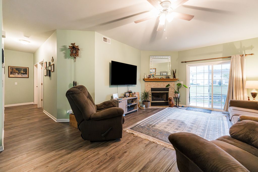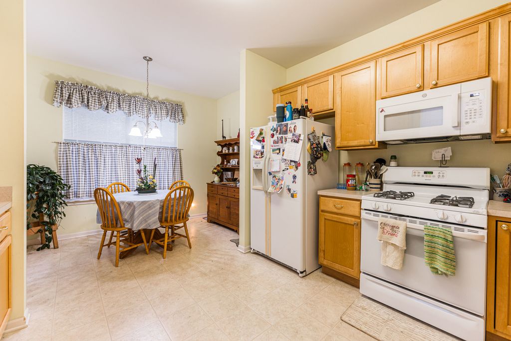 Welcome to easy living in Summit Enclave! This beautifully maintained 2-bedroom, 2-bath 1/2 duplex offers an inviting open layout with volume ceilings and abundant natural light. The spacious living area flows seamlessly into the kitchen and dining space-perfect for both relaxing and entertaining. Step outside to enjoy peaceful pond views from your private patio, an ideal spot for morning coffee or evening sunsets. The primary suite features a walk-in closet and private bath, while the second bedroom and full bath provide comfortable space for guests or a home office. A two-car garage adds convenience and extra storage. Located in a quiet, well-kept neighborhood just minutes from shopping, dining, and NIU, this home combines comfort, style, and low-maintenance living-all in one perfect package! Updates in recent years include: roof (2 years); washer/dryer (2 years); microwave (1 year), dishwasher (1 year), and water heater (5 years). Choice home warranty included (Choice Plan $420).