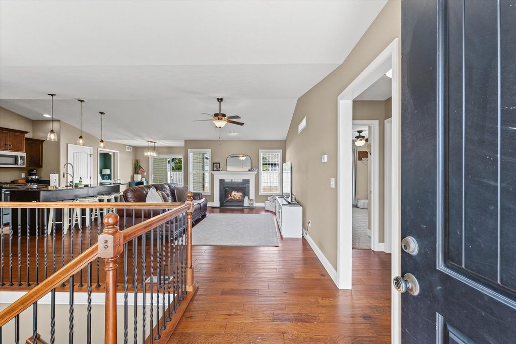 Built in 2016, this impeccably maintained home offers over 2,800 finished sqft in one of Mahomet's most desirable neighborhoods. Enjoy great curb appeal with a welcoming front porch and open-concept design featuring cathedral ceilings, wood floors, and a cozy gas log fireplace. The kitchen boasts a large island with farmhouse sink, bar seating, and plenty of storage, opening to a bright dining area with access to the back patio. The primary suite includes a walk-in closet, dual sinks, and a stunning tiled walk-in shower. Two additional bedrooms and a full bath complete the main level. Downstairs, the finished basement offers a huge family room, fourth bedroom, and full bath. Relax on the back patio overlooking the spacious, fenced yard. Move-in ready and beautifully cared for-schedule your showing today!