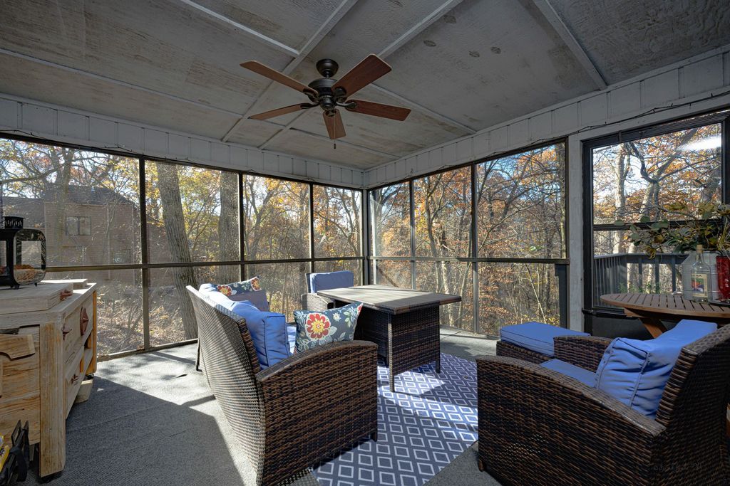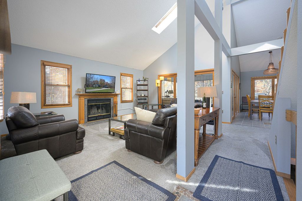 Light, bright and beautifully appointed 3 bed, 3 bath contemporary farmhouse with ample closet storage space and detached two car garage, all tucked at the end of a long, private driveway and set nestled amongst the trees with a gorgeous, wooded backdrop on 1.22 acres offering privacy, scenic natural buffer and ample room to enjoy the outdoors and incredible setting. Generous paver patio with landscaped accents and covered porch greets you upon approach, and feeds to airy main level featuring large living room with woodburning fireplace, cathedral ceilings and multiple skylights, open dining area with plenty of room to entertain that offers direct access to generous screened porch and rear deck overlooking the treed scenery beyond, modern kitchen with stainless appliances, new refrigerator (2025), rich wood cabinetry, granite counters, eat-at peninsula, skylight above, pantry and convenient laundry closet with new washer and dryer (2024), and comfortable bedroom with full bath including jetted bath. Head upstairs to find a cozy loft landing that looks over the main level living area and a spacious primary suite with more cathedral ceilings and well-adorned private full bath with skylight and tub/shower combo. Retreat to the finished lower level and enjoy the inviting family room with stacked stone wall accent and direct access to spa porch with hot tub, the perfect spot to relax and unwind while enjoying the abundant nature that surrounds, nicely sized additional bedroom, utility closet with hall space big enough to accommodate a desk area, full bath with tub/shower combo, and sweeping den/study currently used as additional guest sleeping space. The exterior is highlighted by attractive landscaping that mixes with the natural scenery to enhance the setting. Enjoy the outdoors from the patio and covered front porch, expansive screened porch, rear deck, or hot tub porch, each offering a different vantage point experience. Asphalt drive with plenty of outdoor parking area leads to detached 2car garage offering room for vehicles and storage/workshop. Location is convenient to all amenities of The Galena Territory including Owners' Club with indoor pool, outdoor pool, fitness facility, game room, multi-sport gym, tennis courts and more