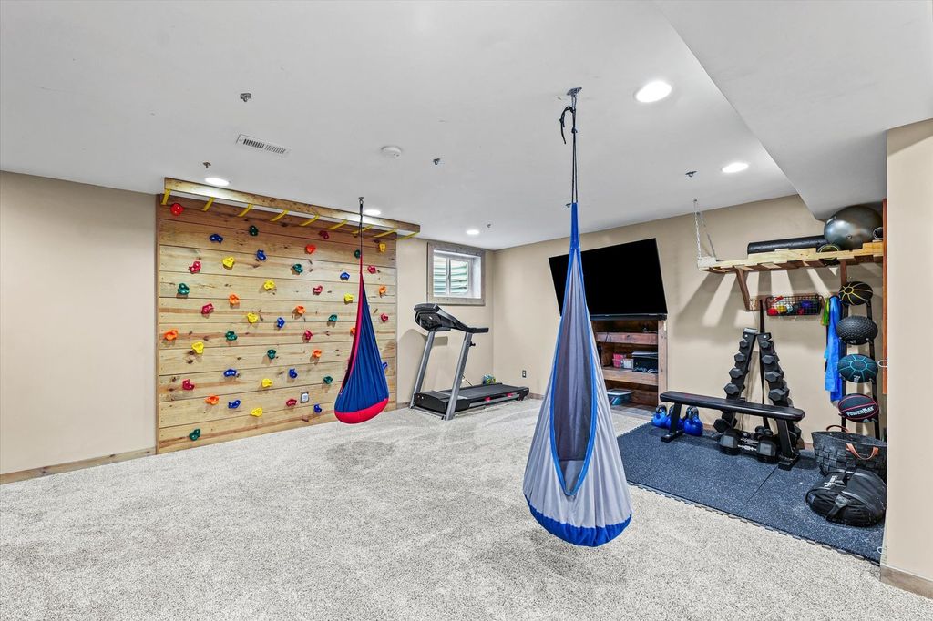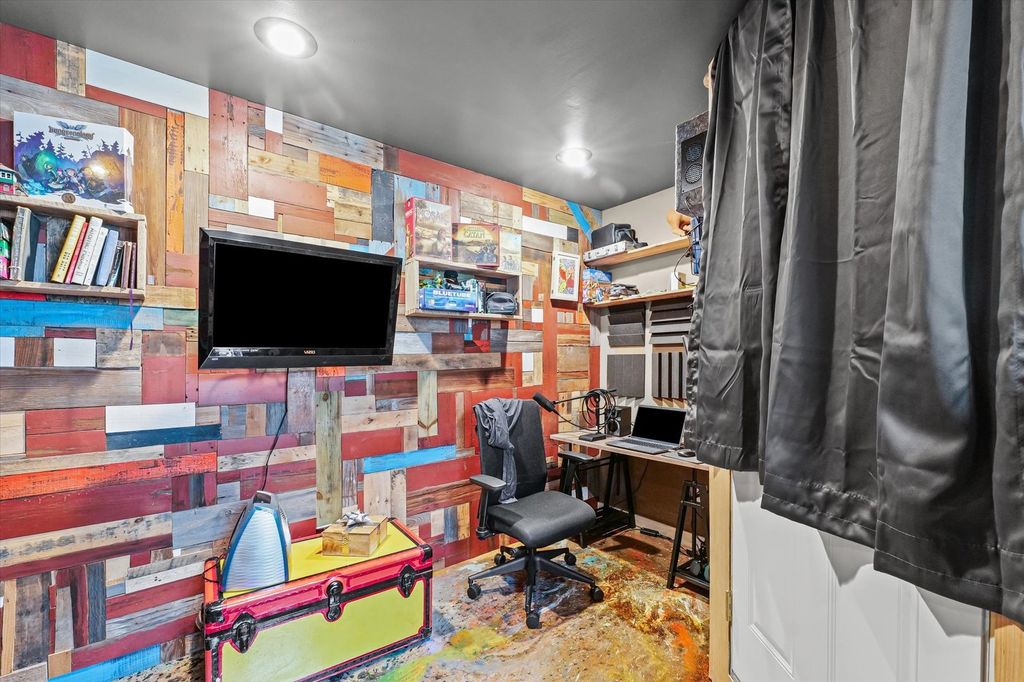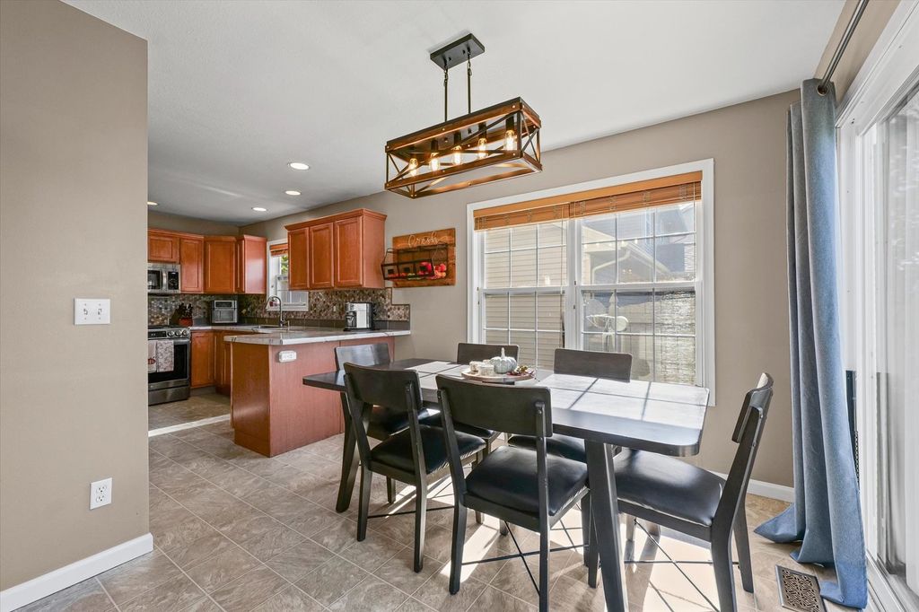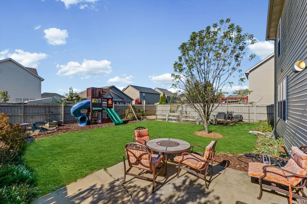 You'll love this bright and spacious 4-bedroom, 2.5-bath home in Champaign's desirable West Ridge subdivision. The open floor plan features a cozy living room with gas fireplace, an eat-in kitchen perfect for entertaining, plus a dining room and half bath. The unique rear staircase leads to four bedrooms upstairs, including a generous primary suite with an updated attached bath and a large walk-in closet, plus a convenient second-floor laundry room. The finished basement adds a kid friendly recreation room with rock wall and an office area with custom painted/epoxy flooring, reclaimed wood mosaic wall and an audio recording booth, offering even more flexible space and storage. Outside, relax in the beautifully landscaped, fenced yard with an established garden, strawberry patch, blackberries, and honeycrisp apple tree. Home has a 2 car garage, plus solar panels for added efficiency. Great neighborhood with walking paths, a stocked pond for fishing, and Sunset Ridge Park just a few blocks away. Close to shopping, dining, and only one block from Pink line MTD stop and school bus stops. This home truly has it all! Roof 2023, AC 2016, Custom finished basement 2020, updated master bath 2025.