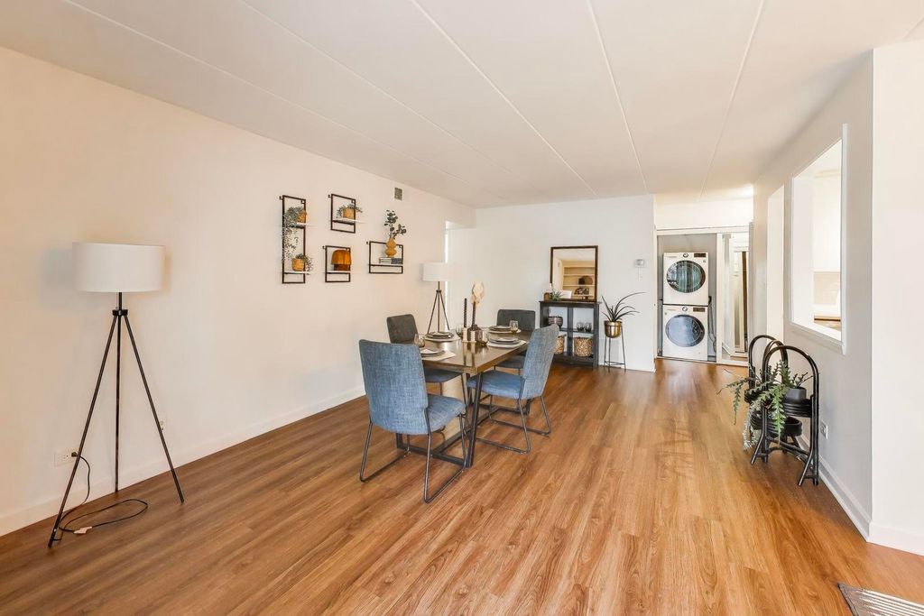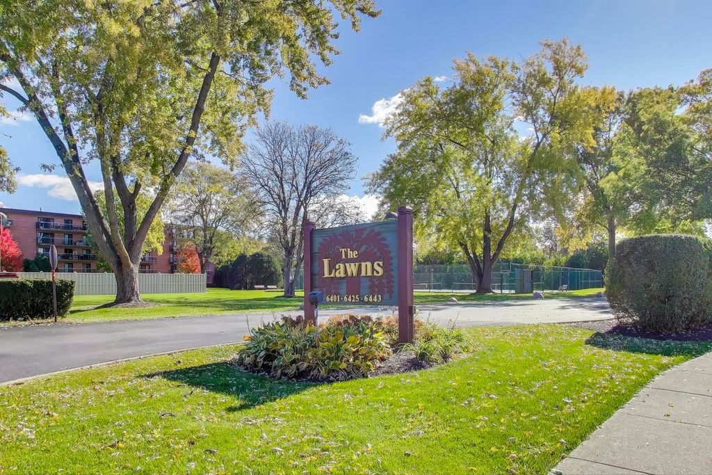 Step into this sunny, move-in ready 2-bed, 2-bath end-unit condo in The Lawns, where everything feels bright, open, and easy. The spacious, open-concept living/dining area flows right out to a huge private, fenced patio-your new favorite spot for morning coffee or evening hangs. Timeless & well-designed describes the kitchen which boasts SS appliances and ample cabinets and counter space. Gleaming floors, fresh paint and an in-unit washer/dryer keep life simple. The primary suite brings the perks with a walk-in closet, ensuite bath, and its own balcony access. Recent upgrades include furnace and W/D (2023), plus kitchen appliances, hot water heater and flooring (2020). Enjoy resort-style amenities: pool, tennis courts, clubhouse, heated garage parking, and extra storage. Also included in the HOA is gas, heat, water, lawn care, snow removal, and scavenger-so maintenance is basically on autopilot. Close to shopping, dining, parks, and expressways. Clean, bright, and rarely available... this one's ready to impress.