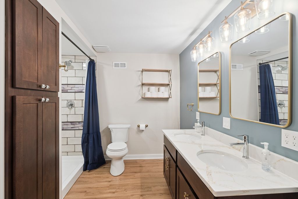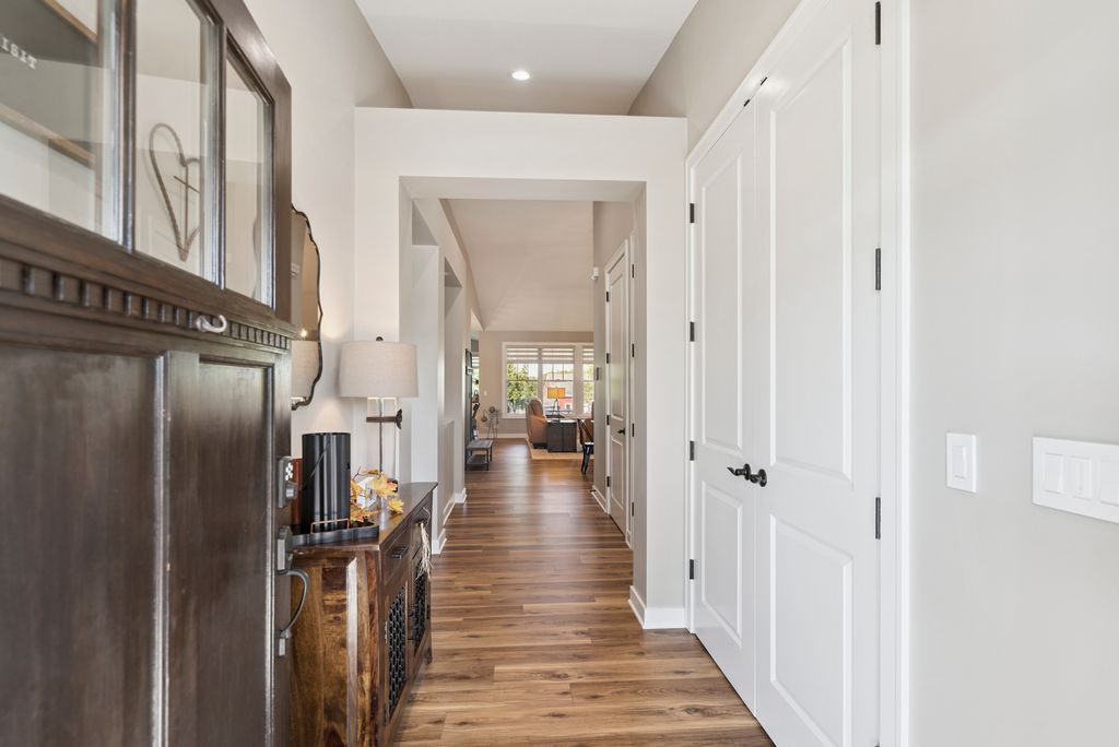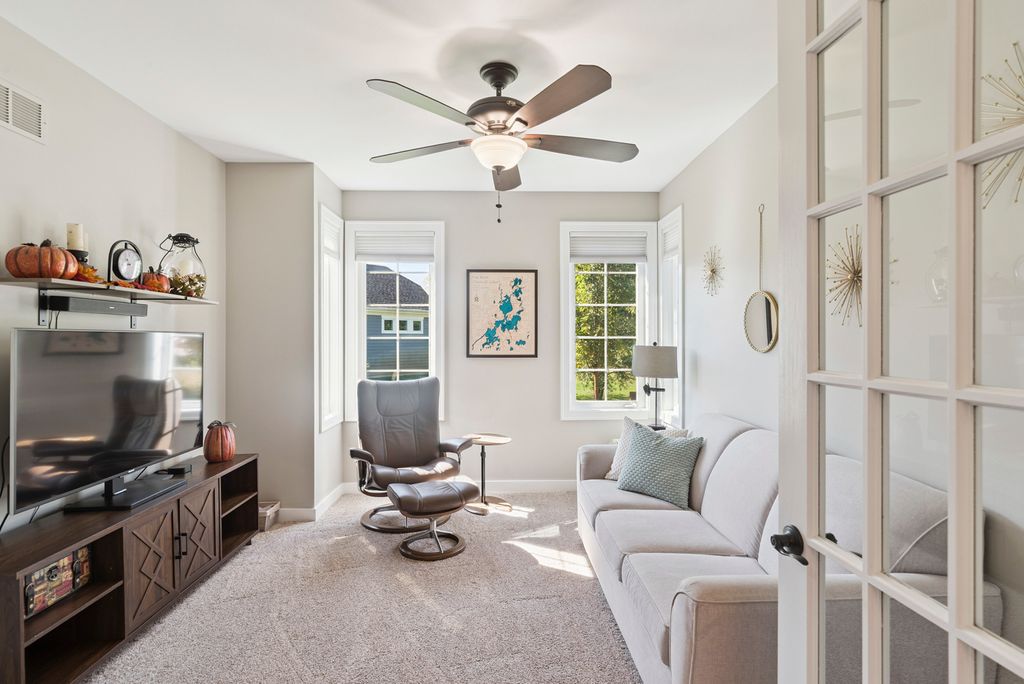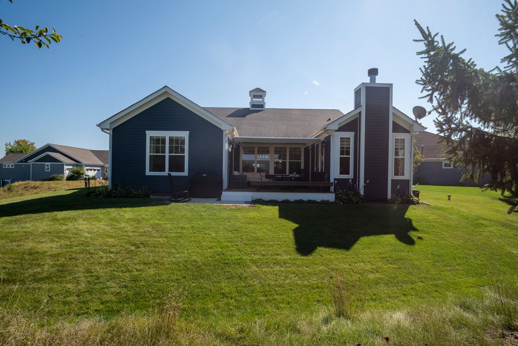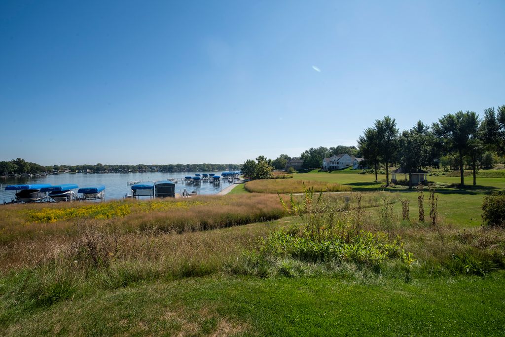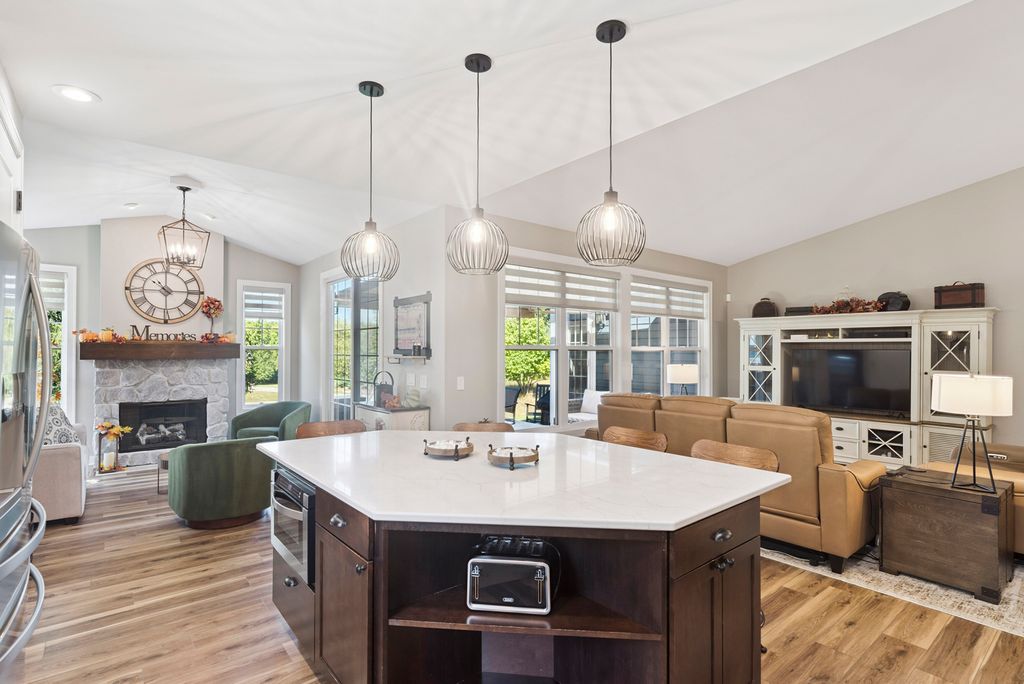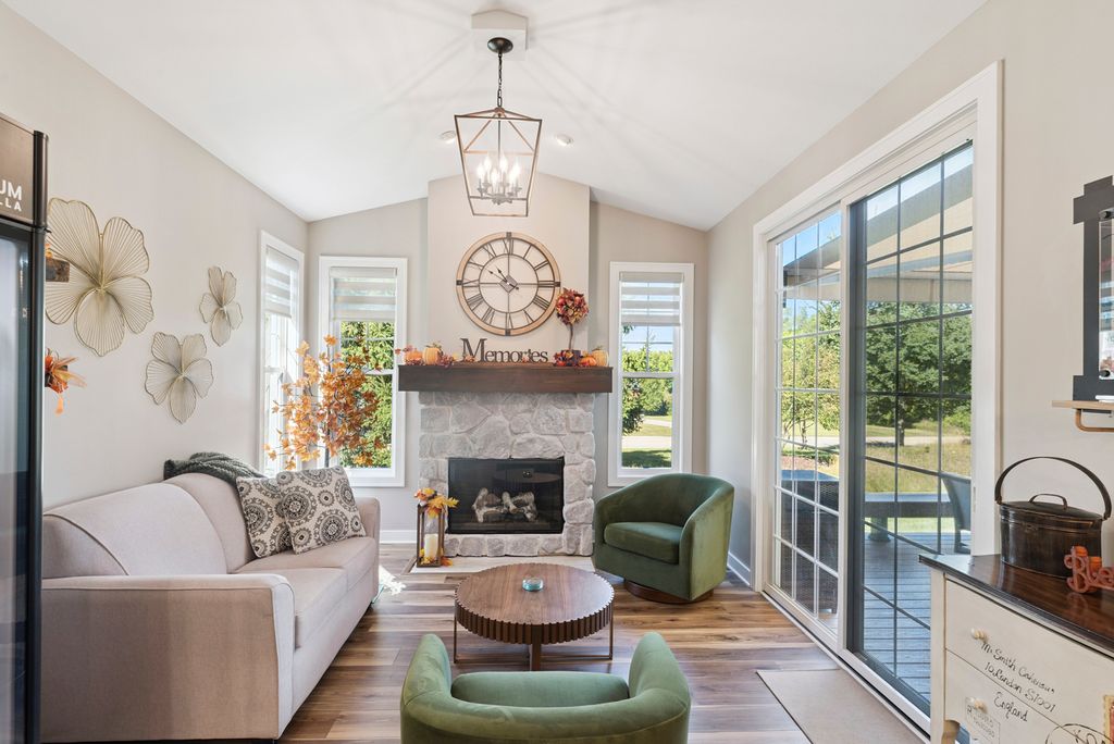 Discover the perfect blend of relaxation and elegance in Newport Cove, a coastal-inspired WATERFRONT locale on Bluff Lake-one of the sparkling gems of the Chain O' Lakes. EVERYTHING in this treasured RANCH STYLE home has been UPDATED, TENDED TO and IMPROVED. Attractive - check, comfortable -check, welcoming - double check! The main level boasts a spacious and thoughtfully designed layout, perfect for everyday living and entertaining. When entering this gem, you will appreciate the seamless blend of the living and dining rooms and kitchen, inviting you to enjoy an open concept lifestyle with loads of natural light. You'll admire the contemporary custom blinds on every window, the NEW quartz countertops (kitchen, laundry, desk area) and most certainly the high end NEW LVP flooring throughout. The cozy den with handsome stone fireplace leads out to the renovated deck/patio with a retractable awning and 'spot on' LED lighting. The airy primary bedroom offers a lovely, renovated ensuite as well as access to the private deck. Closets have been professionally 'decked out' for ultimate organization and space. The roomy second bedroom, full guest bath with upgrades and family room provide many options to customize the floor plan to your needs. Laundry room is convenient, very functional and adorably upgraded. The lower level presents the ultimate in additional living space for entertaining (wet bar), relaxing, exercising, frankly, its suitable for whatever your needs are! A handsomely appointed full bathroom, two spacious bedrooms and heaps of storage round out this awesome space. The oversized three-car garage with NEW DRIVEWAY is perfect for all your vehicles, with ample space for a golf cart to hop on and head down to the waterfront or buzz around to visit neighbors. This wonderful neighborhood provides a truly unique space fostering community and leisure. While visiting the home, be certain to take a short walk down to the gazebo and inspect the top-of-the-line piers at the 'residence only' marina. Please take time to review the list Property Upgrades found under Additional Info.