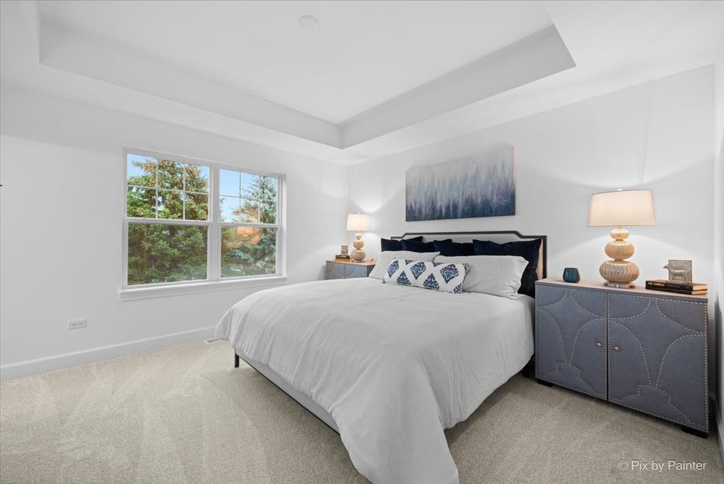 Available immediately! Just 2 blocks from the Metra, welcome to Ridgefield Landing-a boutique community of just 10 townhomes where modern elegance meets exceptional walkability. Enjoy open-concept living with 9-foot ceilings, upgraded wide luxury vinyl plank flooring, 5-inch baseboards, solid core doors, designer tile selections, and high-performance James Hardie siding for lasting durability. At the heart of the home is a stunning kitchen featuring GE stainless steel appliances, quartz countertops, 42" cabinetry with soft-close doors and drawers and under-cabinet molding, a sleek tile backsplash, and an expansive island with seating. The dining room is located just off the kitchen and offers the perfect space for casual meals or formal gatherings. The family room sits on the opposite side and includes direct access to your private balcony-ideal for relaxing or entertaining-with a stylish built-in dry bar adding the perfect finishing touch. Upstairs, the spacious primary suite includes a walk-in closet and an en-suite bath with quartz-topped dual vanity and tiled walk-in shower. A second bedroom, full bath, and laundry area (GE washer and dryer included) complete the upper level. Additional premium touches set this home apart, including window treatments on front windows, a 2-car attached garage, smart home technology package (central control panel, Wi-Fi boosters, smart thermostat), and energy-efficient construction with a HERS score rating. Brand new Samsung 65" TV included! Located just two blocks from downtown Cary and the Metra, you're steps from local favorites like Barstool-rated Uncle Jerry's Pizza, the famous Tracks Bar & Grill, Cucina Rustica, the Sunday Farmer's Market, and Cary's beloved Wednesday Cruise Nights. These homes are complete and in high demand-don't miss your chance to own a brand-new luxury townhome in Ridgefield Landing.