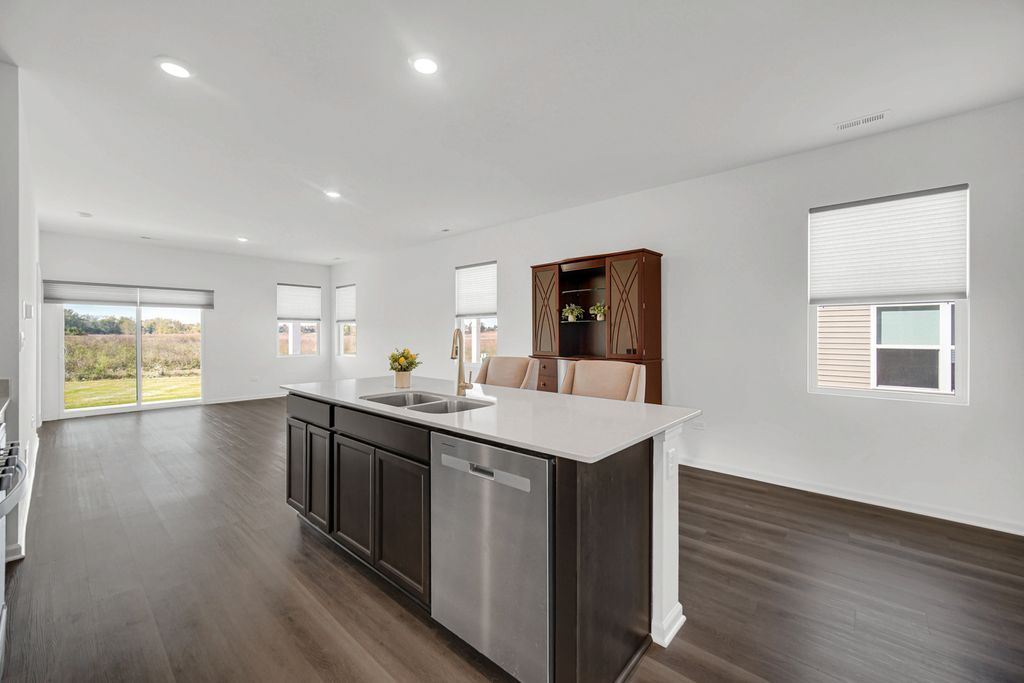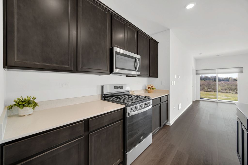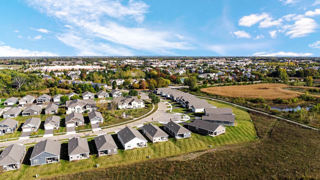 Welcome to a home that truly has it all - comfort, style, and an ideal location in the heart of the desirable Grand Reserve 55+ community. Set on a PREMIUM LOT backing to open green space and a quiet walking path, this beautifully designed ranch offers low-maintenance living surrounded by natural beauty. From the inviting front porch perfect for morning coffee or evening chats with neighbors, to the airy interior with 9-foot ceilings and abundant natural light, every detail is thoughtfully crafted. The open-concept great room and stunning kitchen make entertaining easy, with a large island, 42" custom cabinetry, quartz countertops, stainless-steel appliances, a pantry, and durable luxury vinyl plank flooring. The private primary suite offers a spacious retreat with a luxurious en suite bath featuring a raised-height double vanity, quartz counters, walk-in seated shower with ceramic tile, and clear glass doors. A generous laundry room with extra shelving and a brand-new washer and dryer adds everyday convenience. Step outside to a covered back patio overlooking peaceful green space - no neighbors behind you, just the sound of birds and rustling leaves. Additional highlights include custom windows throughout, a 2-car garage with Tesla charger and service door, and a full suite of America's Smart Home technology, including a smart video doorbell, thermostat, smart lock, Deako smart switches, and Amazon Echo Pop. The Grand Reserve community offers scenic walking trails, ponds, and wildlife, along with a warm, welcoming atmosphere. Located just minutes from I-90, Route 62, and all the shopping and dining along the Randall Road corridor, this move-in-ready home is in mint condition - a rare find in a truly special neighborhood. Don't miss your chance to make it yours.