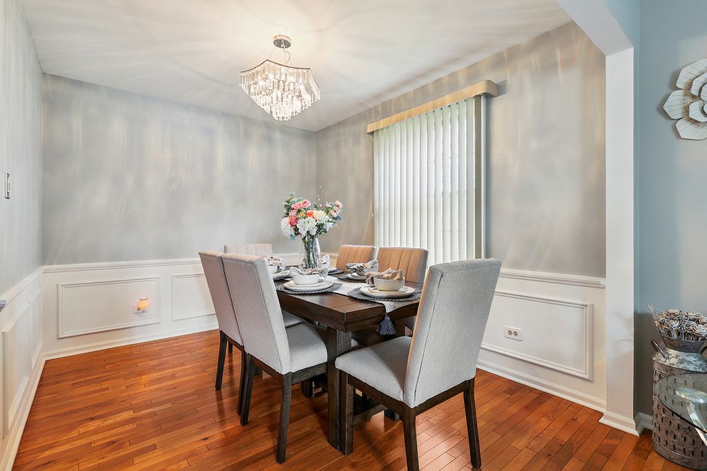 Welcome to this beautifully maintained home nestled in desirable Dolphin Lakes Estates of Homewood! The professionally landscaped front yard and charming curb appeal of this home create a warm and welcoming first impression. Step inside to a bright and inviting living room filled with natural light and gleaming hardwood floors. Host dinners with ease in the elegant formal dining room featuring classic wainscoting trim. The updated kitchen is a chef's delight, showcasing custom cabinetry, granite countertops, a stylish tile backsplash, and a cozy breakfast nook with direct access to the back patio. Upstairs on the third level, unwind in the spacious primary suite complete with dual closets and a luxurious ensuite bath featuring a jetted tub and skylight. Three additional generously sized bedrooms and another full bath on the 2nd level provide plenty of space for family or guests. The finished basement offers even more living space, including a large family room with cozy fireplace, a full bath, and a dedicated laundry area. Step outside to enjoy the stamped concrete patio, perfect for summer grilling or relaxing in the fully fenced backyard. The attached two-car garage provides ample parking and storage. Enjoy a prime location with easy access to the nearby shops, restaurants, parks, walking trails, Metra, easy interstate access and highly-rated Homewood Flossmoor schools! Don't miss the opportunity to make this move-in ready gem your forever home.