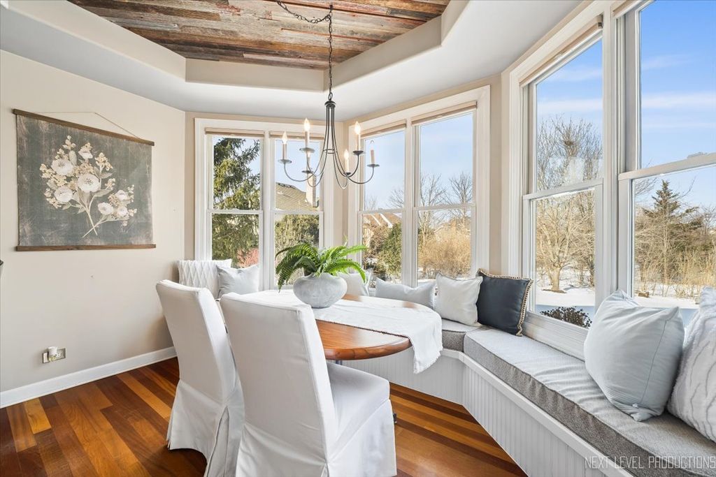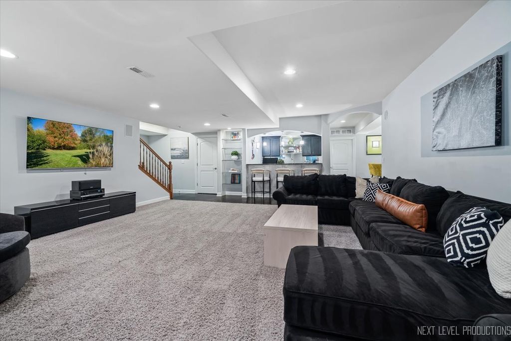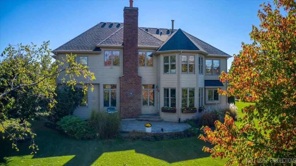 Prepare to be IMPRESSED! This one owner home has all the flow and function any buyer could possibly dream of -beautifully designed and impeccably maintained. Situated on a large flat lot, on a quiet street with no neighbors behind you, this 5 bedroom (+1 in basement), 4 full bathroom home boasts 3,635 sq feet. The finished deep-pour basement provides another 1680 sq feet, complete with HUGE rec space, wet bar, bedroom and full bathroom. The inviting brick, stone and cedar exterior exudes charm while the interior impresses with Brazilian cherry floors, an abundance of natural light, and a layout designed for everyday living and entertaining. When you walk in the entry you are greeted with soaring ceilings and a living room with French doors that lead out to the most darling front porch - so charming! The dining room exudes elegance with a detailed ceiling, wainscoting and bay window. There is a den/bedroom with a closet on the main level overlooking the backyard, with a convenient first floor full bathroom. The kitchen/family room area is expansive with tons of windows and natural light. The stately white fireplace anchors the 10 foot family room area and flows seamlessly into the kitchen where you will find classic cherry cabinets, granite counters with breakfast bar, SS appliances, and double ovens with range hood. The bay window houses the perfect banquette for seating around the kitchen table. The mudroom is AWESOME! This huge space houses an abundance of large cubbies/lockers, closet with tons of storage and utility sink. Upstairs you will find FIVE good sized bedrooms all with vaulted ceilings, amazing natural light and spacious closets. The expansive 5th bedroom is a versatile space - which is the perfect flex area that could serve as an array of options for potential buyers. There is a second floor laundry complete with utility sink. The primary bedroom \ is spacious with an additional sitting room wrapped in windows, and an ensuite with double sinks, walk in shower, whirlpool tub and an abundance of cabinetry. The expansive walk-in closet has an abundance of hanging space and shelving with thoughtful organization for every wardrobe. The location of this property is top notch - quiet neighborhood, close to elementary school, immediate access to all major shopping, and a few short minutes drive to downtown Geneva. This property checks all the boxes: SPACIOUS, open, light-filled, warm & welcoming and very well cared for - this truly is a HAPPY place. This property feels like a warm hug the moment you walk through the door. Come and see why you want to make 3353 Harvest Ridge Drive your new place to call home. Mentionables: Dishwasher 2025, Refrigerator 2023, upstairs ac 2021, Dual Water Heater 5-7 years old, 2 electrical panels. Roof 2016. Hardiboard siding. HOA 73.62 per year. Silvestri Custom home.