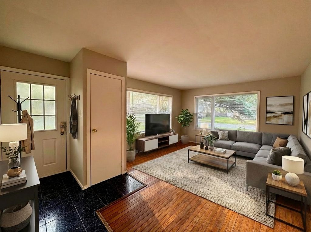 Welcome to this inviting 3-bedroom, 2-bath split-level home, perfectly situated on a corner lot. This home offers a blend of classic charm and modern convenience. Step inside to find a spacious living area with a warm and welcoming atmosphere. The updated kitchen features dark cabinetry and a dining area with access to the side yard. The finished basement provides additional living space, perfect for a recreation room, home office, or extra storage. Outside, enjoy a private fenced backyard, ideal for entertaining or relaxing. The attached 1-car garage adds convenience and extra storage. Located near parks, shopping, and major roadways, this home offers both tranquility and accessibility.