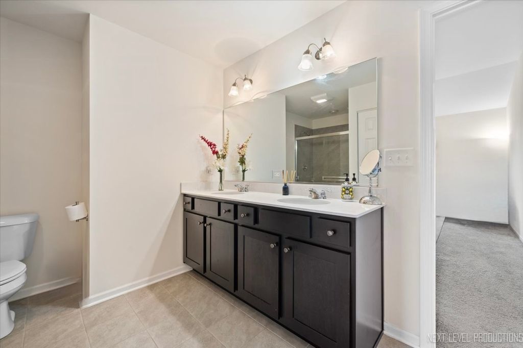 Discover this charming east facing 2-bedroom townhome nestled in the sought-after Gramercy Square community! Step into a welcoming foyer that flows seamlessly into a spacious living room, bathed in natural light and accented with elegant wood laminate flooring, creating a warm and inviting atmosphere. The open-concept layout connects the living area to a dining space and a well-appointed kitchen, featuring ample cabinetry, generous counter space, granite countertops with a stylish tile backsplash, stainless steel appliances, and a convenient pantry closet. Sliding glass doors lead to a private patio and backyard, perfect for relaxation. A half bath on the main level adds practicality. Retreat upstairs and enjoy a generous master suite with a spacious walk-in closet, dual vanity, and a modern shower. The second bedroom complemented by a second full bath, a cozy loft area, and the added convenience of an upstairs laundry complete the second story. A private two-car garage provides ample space for vehicles or additional storage. Located in the highly acclaimed Indian Prairie School District 204. Its prime location near Route 59 and 75th Street offers easy access to shopping, dining, and major commuter routes, with a nearby school bus pickup for added convenience.