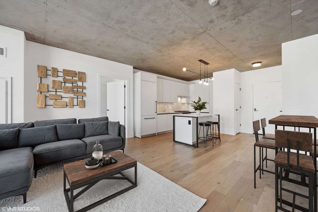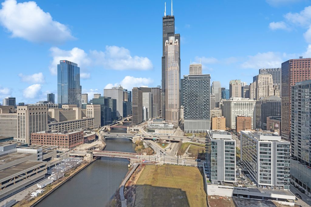 Unique opportunity to own this 26th-floor condo overlooking the Chicago Riverwalk and prime views of the City. Completed in 2023 and designed by Perkins + Will, this landmark development combines bold, industrial-inspired architecture with sustainable, future-forward construction. Amenities include indoor parking with EV stations, an outdoor pool with cabanas, a fitness club with outdoor training terrace, strength and motion studios, wellness and massage rooms, a sports simulator, media lounge, co-working spaces, and private conference rooms. Entertain in the chef's kitchen and dining salon, or head to the sprawling deck with fire pits, open-air kitchen, and grilling stations. Residence 2610 showcases dramatic skyline and river views from floor-to-ceiling windows. Wide-plank hardwood floors, a spa-style bath, and a chef's kitchen with quartz island and paneled appliances. Enjoy 24-hour door staff, package concierge, dry cleaning valet, and package receiving with cold storage for grocery deliveries.