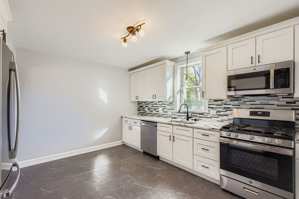 Newly rehabbed, this stunning Georgian features a rare double addition offering 5 spacious bedrooms, 2 full baths, and a half bath. Enjoy a brand-new kitchen with stainless steel appliances, updated cabinetry, and sleek finishes. Enjoy the beautiful hardwood floors throughout the main and upper levels, with heated tile in your cozy back family room. The basement includes a cozy fireplace and additional storage area. With modern updates, generous square footage, and classic charm, this move-in-ready home is a must-see!