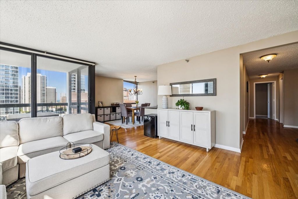 Beautifully updated northwest corner 2-bed, 2-bath residence offering 1,260 square feet of refined living space. Floor-to-ceiling windows flood the home with natural light and open to a spacious corner balcony, perfect for indoor-outdoor living and entertaining. The home showcases hardwood flooring throughout the main living areas, a custom maple kitchen with stainless steel appliances and built-in microwave, and thoughtfully designed bathrooms with matching cabinetry. Generously sized bedrooms and abundant closet space provide comfort and functionality. (In-unit laundry can be installed-an option not available in every unit in the building.) The Elm offers an impressive suite of amenities: outdoor pool and sundeck with grills, fitness center, party room, bike storage, dry cleaners, and 24-hour door staff. Garage parking is included in the price. Located in the heart of the Gold Coast, just steps to parks, shopping, renowned dining, nightlife, and public transit-including the Division Red Line stop.