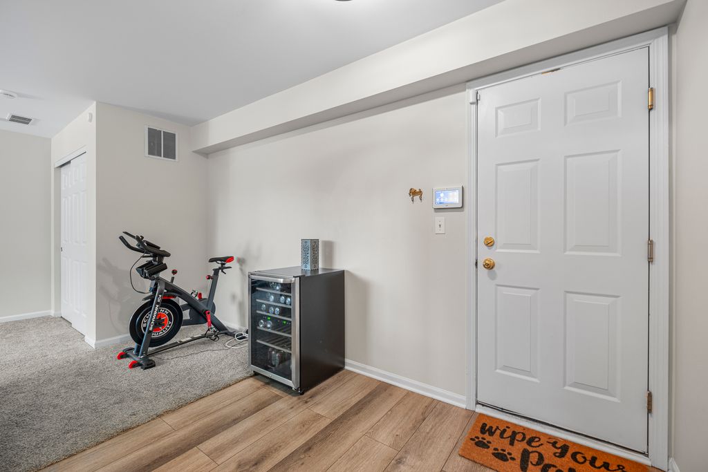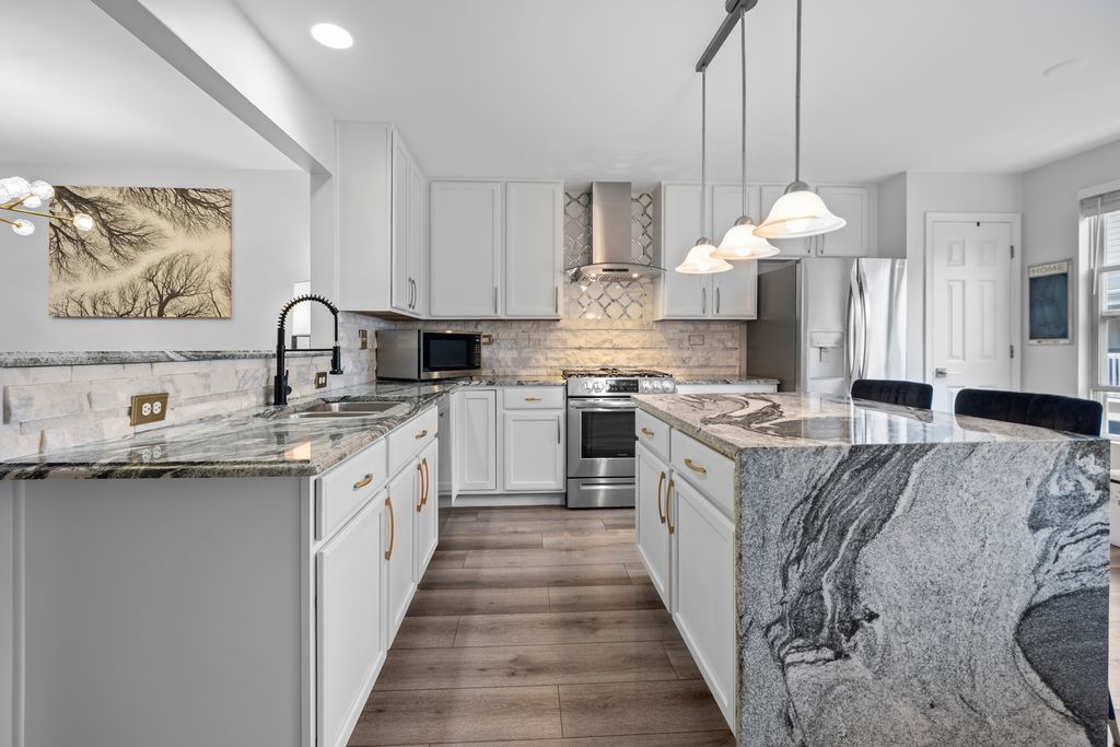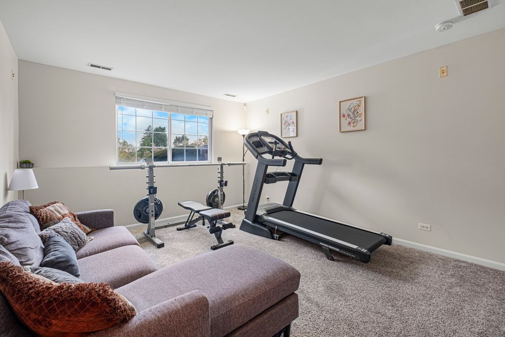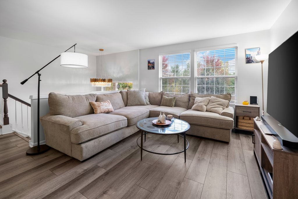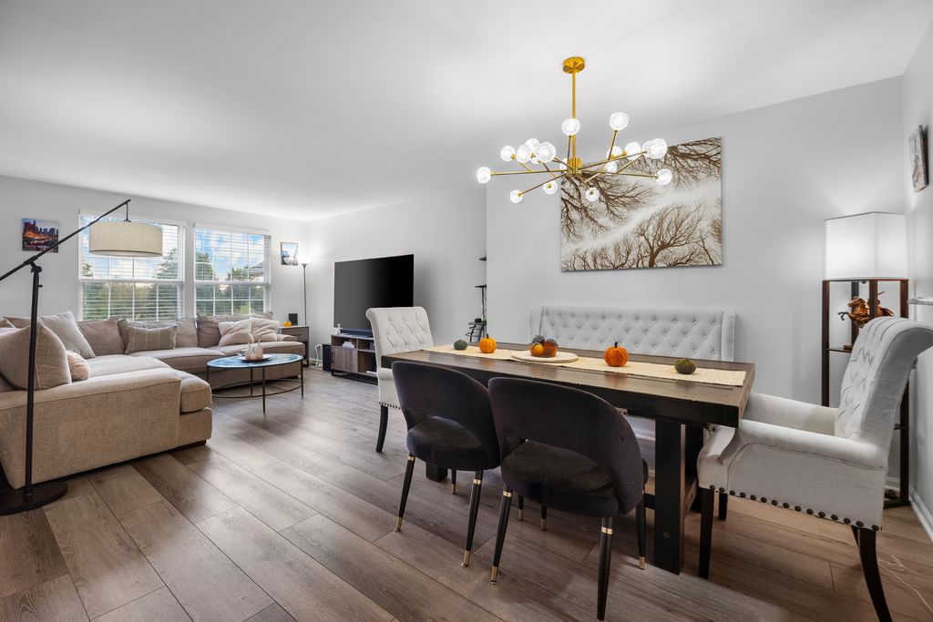 Discover the perfect balance of style, comfort, and convenience in this beautifully updated townhome, ideally situated in The Reserve at Elgin with peaceful views of the surrounding nature area and pond. Bathed in natural light, the open-concept living and dining area showcases coveted southern exposure, engineered hardwood flooring, and plenty of space for both relaxation and dining. The showstopping kitchen serves as the heart of the home, featuring 42" white cabinetry with elegant gold hardware, luxurious granite countertops with a waterfall island, and generous space for cooking and entertaining. Enjoy the ease of main-level laundry and a private balcony overlooking the tranquil landscape. Upstairs, the expansive primary suite impresses with a vaulted ceiling, oversized walk-in closet, and a spa-inspired bath complete with a large modern vanity and walk-in shower. Two additional spacious bedrooms share a beautifully updated bath with a sleek stand-up shower. The versatile lower level is ideal for a family room, home office, or fitness space. Recent updates include a new AC unit in 2024, a 2023 water heater, 2022 washer, dryer, and dishwasher, plus an ADT security system for added peace of mind. 2 car attached garage. Perfectly located just minutes from shopping, dining, expressways, and scenic nature trails. HOA $240/month.