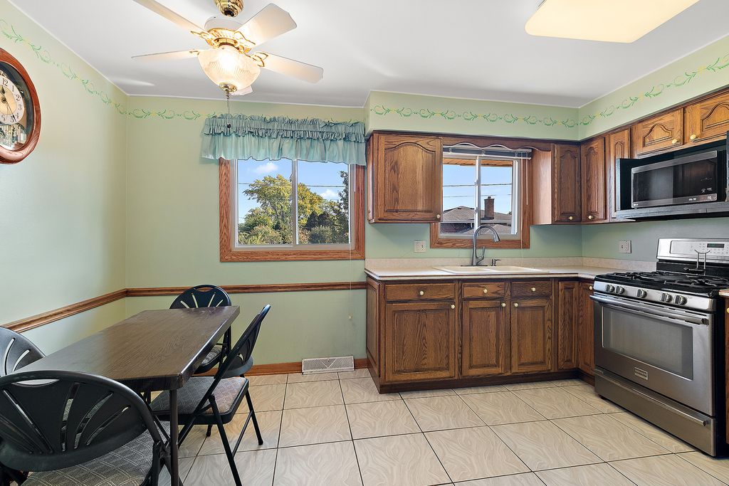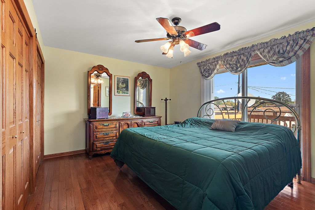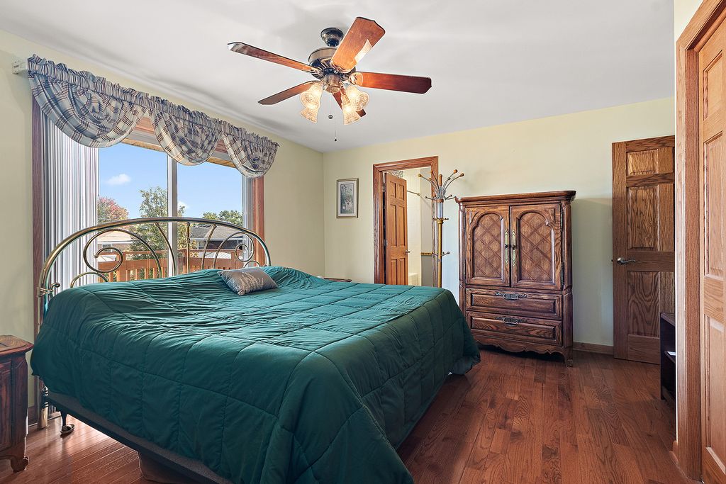 Well-Maintained Split-Level Home situated across from forest preserves. This charming and well-cared-for home features 3 bedrooms, 2 baths, and a walk out lower level with family room w/fireplace-perfect for relaxing or entertaining. Kitchen features all stainless appliances. Gleaming hardwood floors throughout living room & dining room and all upstairs bedrooms. The master bedroom offers a balcony, providing a peaceful retreat. Enjoy outdoor living on the large deck, overlooking a fully fenced backyard complete with a shed for extra storage. Side load garage and large concrete driveway provides ample parking. A must see!