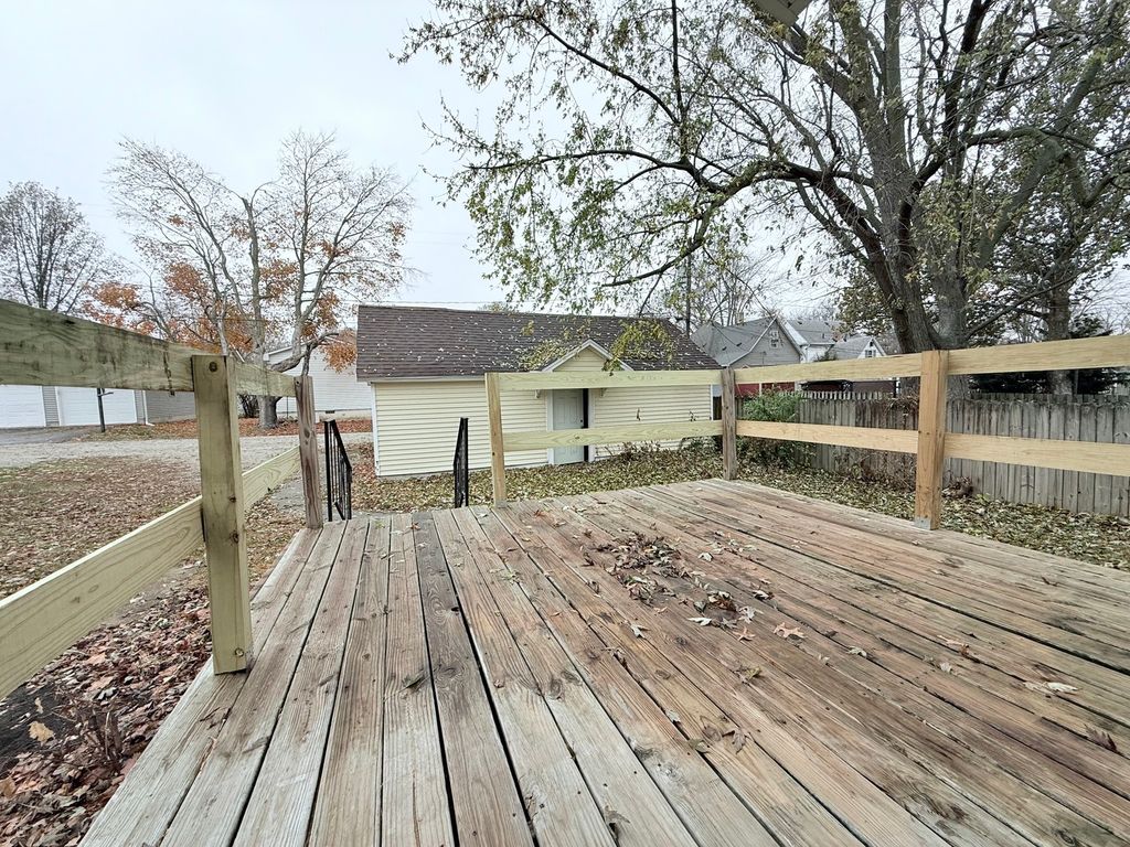 Spacious 4-bedroom, 2-bath home offering comfortable living throughout. The inviting living room features a gas fireplace (currently not hooked up), and the eat-in kitchen opens to a separate dining room, perfect for entertaining. The alley access, back deck and 2-car detached garage add convenience and outdoor enjoyment. The home offers two bedrooms on the main level and two upstairs, along with a full unfinished basement for additional storage. Notable updates include windows, roof, and siding (2008); furnace (2017); updated bathroom (2024); new central air and water heater (2025); and a new electrical weatherhead (2024). Inside, the main level features include a primary bedroom with French doors including an en suite bath, 2nd bedroom with fresh paint, main-floor laundry, and a pantry closet in the dining room. The kitchen has new flooring, an updated stove (2017), and a newer dishwasher (2024). All appliances stay. This well maintained home is move-in ready with plenty of space and valuable updates throughout.