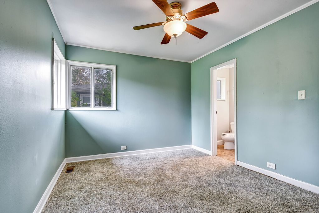 ***New lower price-act fast before this deal slips away!***Say goodbye to renting and hello to homeownership with this charming, move-in ready ranch featuring an attached 1.5-car garage. Step inside to find a freshly painted interior and brand-new carpeting throughout. The spacious living room, highlighted by two large picture windows, flows seamlessly into the formal dining area-perfect for everyday living and entertaining. The adjacent kitchen offers a cozy breakfast nook, classic wood cabinetry, updated vinyl-ash flooring, and modern stainless steel appliances, including a microwave and brand-new oven/range and refrigerator. This home offers 1.5 updated baths, including a private half-bath in the primary bedroom. A convenient door from the kitchen leads to a beautiful custom stone patio and a generously sized fenced in backyard-ideal for relaxing or hosting gatherings. Brand new roof on the house as well. Schedule your private showing today and set your closing date to move right in!