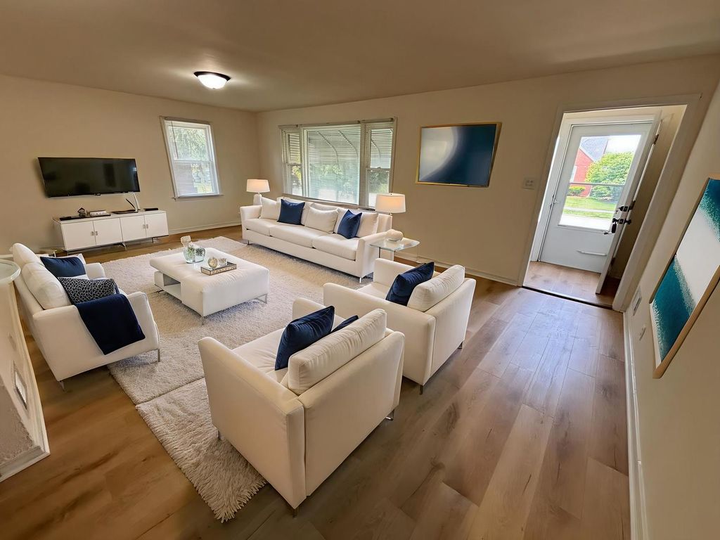 Welcome to this beautifully renovated 3-bedroom/ 2-bath all Brick ranch that perfectly blends modern updates with classic charm! Step inside to find brand-new flooring throughout, plush new carpeting in the bedrooms, and an open, airy layout designed for comfortable living. The brand new kitchen is a chef's dream-featuring stylish cabinetry, sleek quartz countertops, subway backsplash and brand-new stainless steel appliances including refrigerator, oven, microwave and dishwasher! There are new interior and exterior doors and new trim. Both bathrooms have been completely updated, including a private half bath in the spacious primary suite. All 3 main level bedrooms offer robust closet space, providing generous storage for everyone. Windows newer. Downstairs, the massive unfinished basement offers endless potential-plus a finished flex room that's perfect for a home office, playroom, or gym & laundry area. Enjoy outdoor living in the large yard-ideal for entertaining, gardening, or simply relaxing. 20x18 asphalt apron provides private parking in rear. This move-in ready home is a must-see. Don't miss your chance to own this stunning rehab with modern upgrades and thoughtful details throughout! There are no tax exemptions reflected, so taxes will go down with a filed homestead exemption. This home is for sale / not for rent.