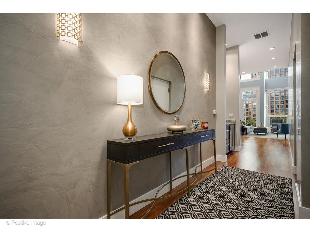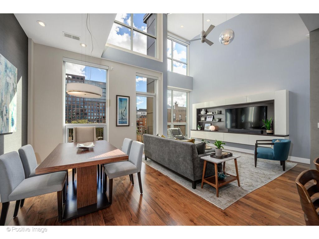 Stunning skyline views, refined design, and sleek modern features define this quintessential West Loop penthouse. Step directly into your home via a private elevator and discover a dramatic residence with soaring 22-foot ceilings and floor-to-ceiling windows that frame sweeping vistas of Willis Tower and downtown Chicago. The living room is a showpiece, enhanced with high-end lighting, custom millwork, marble window sills, and motorized shades throughout. Outdoor living is just as extraordinary, with a private rooftop deck and two additional balconies offering unforgettable views. Meticulous attention was paid to every detail and the result is nothing short of perfection. An elevator opens directly into the penthouse, where the main foyer finely clad in Venetian plaster welcomes you home. The open floor plan in the living spaces enjoys an abundance of natural light through two stories of windows. Both elegant and subtle, a contemporary floating built-in entertainment center feels like a piece of art on the wall. A separate dining area, large open kitchen, and a balcony make this the perfect home to entertain a party of any size. The chef's kitchen is a true showstopper and features Copat cabinetry, granite countertops, Fisher-Paykel, Jennair, and Dacor appliances, and a center island with breakfast bar. Just around the corner, a custom-built dry bar awaits with granite counters, a U-line wine fridge and refrigerator drawers, and custom cabinetry with lighting. The private roof deck spans 836 SQFT and is surrounded by a privacy wall, creating a serene oasis in the middle of the city. With sparkling city views of Willis Tower, this is the perfect place to entertain or enjoy a peaceful evening at home. The impressive primary suite features 14.8 ft ceilings, an accent wall clad entirely in custom millwork, a private balcony, custom walk-in closet, and a beautifully appointed ensuite bath with double sink and oversized shower. Traditionally built out as an office "nook" in the hallway, this space has been converted to a second primary walk-in closet and has been completely customized. The second bedroom has an ensuite bath that Jack-and-Jills into the hallway for convenient guest use. Currently configured as a den, the third bedroom features custom millwork, stunning built-ins, a huge walk-in closet, and an ensuite bath. Two-car tandem attached garage parking and a dedicated storage cage are both included in the price. Ideally located in the West Loop, walk to world-class restaurants, West Loop Farmer's Market, multiple gyms, Whole Foods, Mariano's, parks, playgrounds, daycare options, Skinner Elementary School, and easy access to the Loop, 290, and public transportation. Welcome home!
