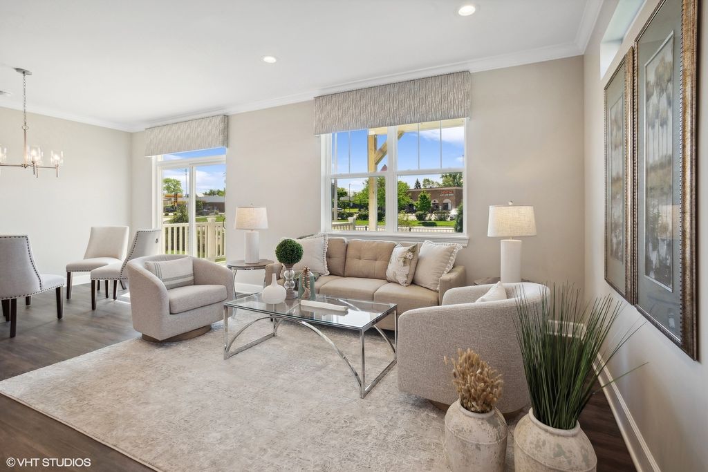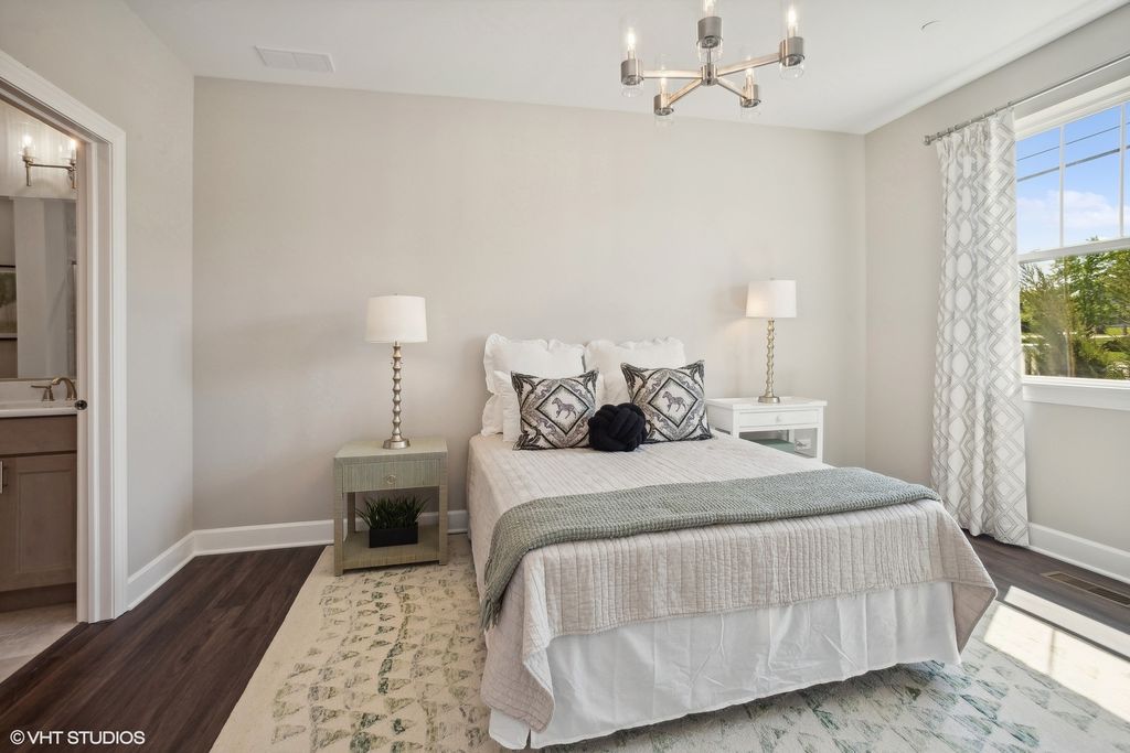 Welcome to The Townes at Mill Creek, where modern living meets convenience! This beautiful brand-new construction property offers single-level living, 2 spacious bedrooms, 2 baths, and a 1-car garage, all within the heart of Addison. Step inside to discover 1,281 square feet of open-concept living, highlighted by soaring 9' ceilings and stylish finishes throughout. This home features stylish and durable vinyl plank flooring in the main living areas. The kitchen showcases GE stainless steel appliances, quartz countertops, a tiled backsplash and 36" wall cabinets with crown molding, soft-close doors, and drawers. The spacious primary bedroom boasts a large walk-in closet and a beautiful en-suite bathroom with upgraded finishes and a double bowl vanity. Please note that the photos shown are of the Model home and do not represent the finishes for this specific home. With its prime location, this property ensures effortless access to major expressways, retail shopping destinations, and endless dining options along Lake St. Make this brand-new construction property yours today!