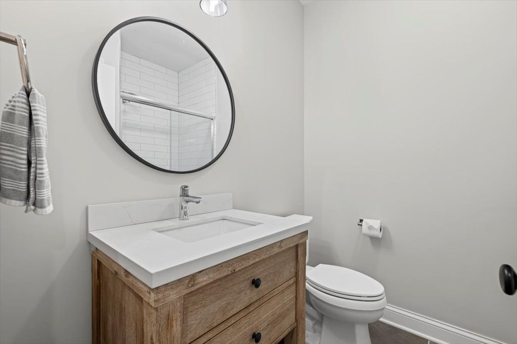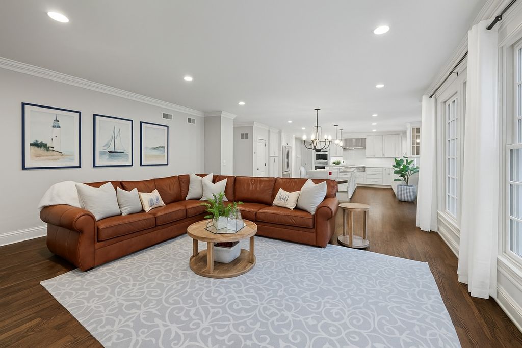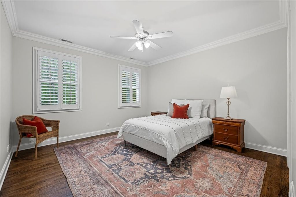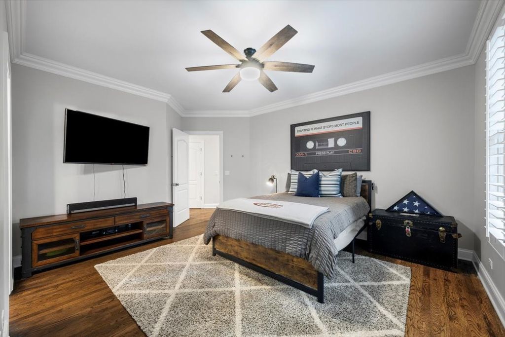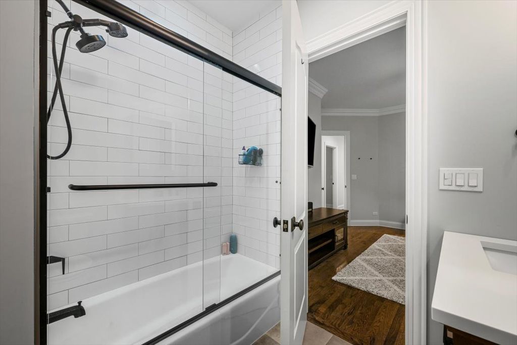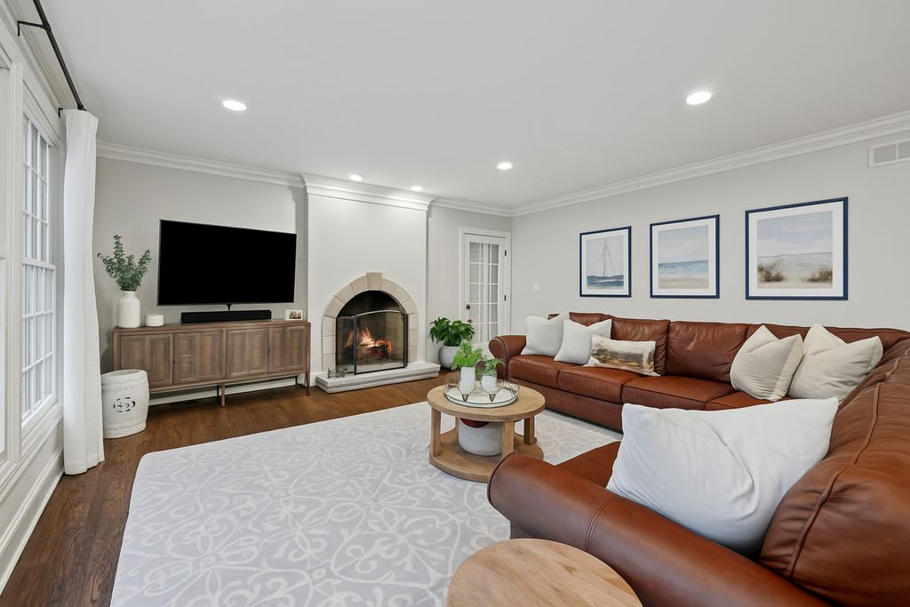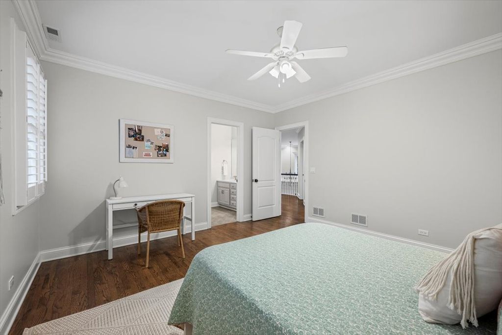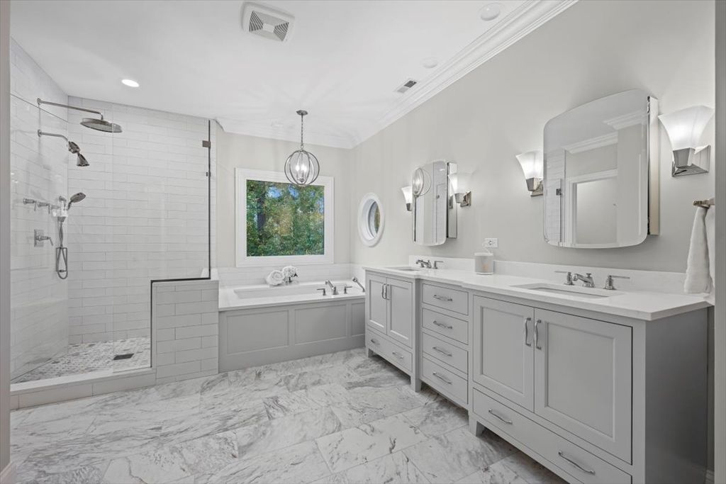 Welcome to your dream home, a stunning Georgian-style two-story brick residence with a timeless slate roof, nestled on a quiet, tree-lined cul-de-sac. Begin your journey with a grand entry through a motorized gate, offering both privacy and security, conveniently operable via a phone app. The elegant circle driveway is perfect for hosting gatherings, with an unobtrusive 3-car side-load garage that maintains the home's impeccable curb appeal. Set on nearly 2 acres of a wooded sanctuary, this property features a private, aerated pond ideal for kayaking or paddleboarding. The expansive yard is a professional landscaper's masterpiece, boasting multiple spaces for relaxation and entertainment, including a stunning bluestone and tiered paver patio, alongside separate fire pit and fire feature areas, all overlooking the tranquil pond. Step inside to a meticulously renovated interior featuring 9-foot ceilings throughout. A grand foyer with a custom staircase leads you to a spacious dining room on the left and a cozy living room on the right, complete with a gas-burning fireplace. Adjacent to the living room is a private office space. The heart of this home is the chef's kitchen, equipped with high-end appliances, a large eat-at island, and space for a breakfast table. Between the kitchen and dining room is a large butlers pantry with a sink and wine refrigerator, perfect for dinner parties. The kitchen flows seamlessly into the family room with another gas fireplace, offering a warm and inviting space for family gatherings. A four-seasons room adjoins the family room, providing versatility as a private office or workout room, with picturesque views of the outdoor oasis. A slider door from the kitchen opens to the rear patio, perfect for al fresco dining. The main floor also offers a powder room, a full bathroom, and a convenient mudroom and laundry room equipped with dual front-load washers and dryers, ideally located off the garage entrance. Ascend to the second floor to discover five additional bedrooms, including a spacious primary suite, each with updated en-suite bathrooms and generous closets. The large primary suite features a fireplace and an incredible renovated bathroom with a Bain Ultra hydrotherapy tub overlooking the serene pond. A large third-floor recreation room provides the perfect space for game days or casual relaxation. The home is bathed in natural light, creating a bright and airy ambiance. The partially finished basement includes a workout room with rubber athletic flooring and offers nearly 3,000 square feet of customizable space. Located just a few blocks from restaurants, the Metra train, grocery stores and shopping, and with easy highway access, this fully renovated home leaves no detail overlooked. Experience the perfect blend of luxury, convenience and serene privacy in this stunning retreat.