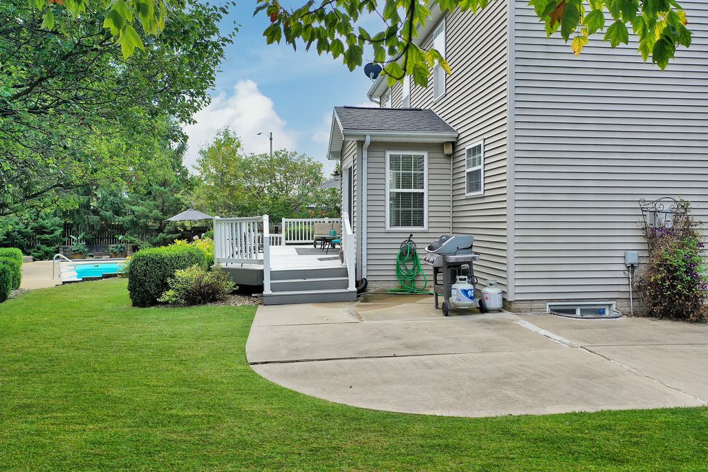 Located in the highly sought-after White Eagle South subdivision and served by Unit 5 Schools, this stunning one-owner home truly shows like a model and exudes pride in ownership inside and out. Offering 5 bedrooms and 3.5 bathrooms, this residence blends comfort, updates, and entertaining spaces seamlessly. Step inside to find a beautifully remodeled kitchen (2017) featuring modern cabinetry, quartz counters, and updated appliances, including a refrigerator new in 2021. Completely refinished solid hardwood flooring on the main floor is impeccable! The home's HVAC system was replaced in 2020, roof and water heater were new in 2018 (roof includes a 50-year warranty), and there's updated carpeting throughout, giving the home a fresh and welcoming feel. Plantation blinds dress the windows, adding a timeless touch of elegance, and the alarm system remains for peace of mind. Downstairs, the fully finished basement is designed for fun and function-complete with an entertaining space, pool table (with all accessories including ping-pong topper remaining), and a custom hardwood wet bar by Whitacre's that will impress every guest. Outside is your private retreat! The in-ground pool is the centerpiece, featuring an updated automatic Coverstar pool cover, a new pool heater (2021), and all pool supplies and equipment remaining for the new owners to enjoy. The backyard is fully fenced and showcases a firepit, spacious deck, and large patio-perfect for relaxing or entertaining. The oversized covered front porch adds even more charm and curb appeal to this exceptional home. Located close to Gaelic Park and the Constitution Trail, this property combines everyday convenience with a neighborhood lifestyle that's hard to beat. The pool is still open for the season, giving buyers a chance to view this outdoor oasis in its full glory.