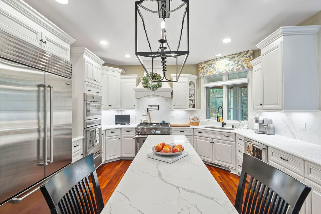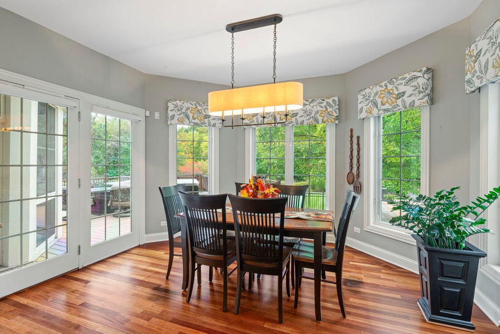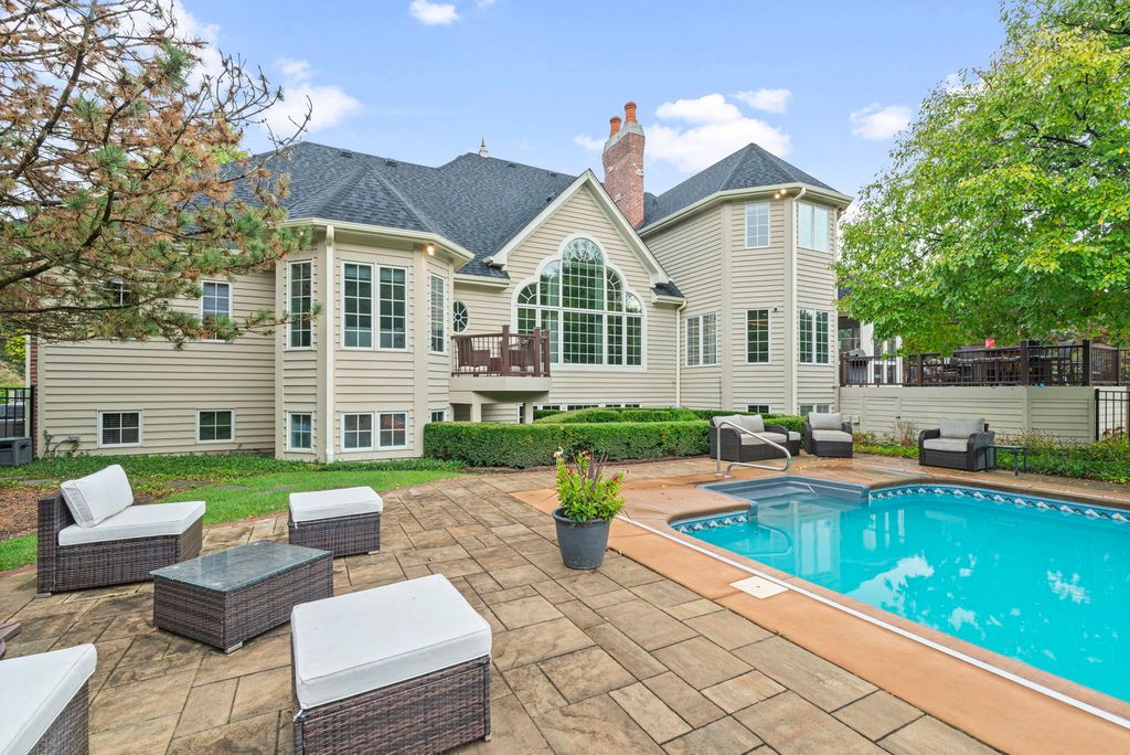 Stunning Reese Custom Builders' residence in Batavia's beautiful Tanglewood Hills Subdivision on a premium 1.02-acre wooded lot. This brick estate is ideally located near downtown Batavia, Randall Road corridor, and within the top-rated Batavia District 101, with Grace McWayne Elementary right in the neighborhood. Tanglewood Hills offers a clubhouse, pools, tennis, pickleball, and basketball courts, playground, and scenic walking paths. Inside, richly appointed spaces feature custom millwork, wainscoted walls, arched doorways, wide crown and base moldings, cherry hardwood floors, grand split staircase, and oversized windows that enhance the spectacular open layout with natural light. The Grand Foyer with a Juliette balcony opens to a Formal Dining Room with elegant wainscoting and a Formal Living Room with raised-panel wood wainscoting, crowned tray ceiling, and fireplace. The impressive two-story Family Room showcases a dramatic wall of windows offering stunning nature views, a stone pass-through gas fireplace, built-ins, and decorative columns. The newly updated Gourmet Kitchen (2020) offers ample white cabinetry, quartz countertops and backsplash, stainless steel SubZero and Thermador appliances, a center island with seating, and a sitting area with a stone fireplace. The sunny breakfast nook opens to the expansive deck (2020) overlooking the beautifully and professionally landscaped yard. Completing the entertainer's kitchen is plenty of storage, a beverage fridge and built-in desk, leading to the stylish Laundry/Mud Room featuring LG washer/dryer, sink, full bath, and convenient access to the 4-car garage, sunroom, and backyard. The spacious first-floor Primary Suite features volume ceilings, new carpeting (2025), a sitting area, and a private balcony. The spa-like ensuite bath offers vaulted ceilings, soaking tub, glass-enclosed walk-in shower, 2 granite-topped vanities, 2 water closets, and 2 walk-in closets with built-ins. A powder room completes the main floor. Upstairs, Bedroom Two feels like a second primary suite with volume ceilings, walk-in closet, and a private ensuite bath. Bedroom Three offers a large closet and shares a full hall bath. The expansive rec room includes 3 window seats, a walk-in closet, and a flexible space perfect for a playroom or extra bedroom. The newly finished lookout lower level (2023) is a true extension of the home, featuring 10-ft ceilings, new wood laminate flooring, a 2nd kitchen with stainless steel appliances, quartz counters, and a full wine fridge. The open-concept family room offers a large gathering space, bar, and table area. A curtain-lined entry and LED movie posters lead into a theater room with a big screen, projector, multi-level seating, and cinema-style ambiance. The lower level also has a workout room, spacious game room with fireplace and pool table, full bath, bonus room, and storage rooms. The backyard is a private retreat backing to a serene conservation easement with 130+ trees. Professionally landscaped, irrigated, and fully fenced (2020), the yard showcases a stunning in-ground pool (2020) with a new heater (2025) and extensive exterior lighting. Enjoy multiple outdoor living spaces, including an expansive deck overlooking the pool and open green space, a stone patio, and a screened sunroom offering panoramic views of the lush greenery and vibrant seasonal colors. This outdoor oasis is beautifully designed for both relaxation and entertaining, offering the perfect blend of tranquility and resort-style living. Updates include a new roof (2025), reverse osmosis system (2025), zoned HVAC, sump pump, water heaters, and water softener (2023), a security system, and IoT smart blinds. This remarkable home offers a rare combination of custom craftsmanship, modern updates, and natural beauty in one of Batavia's most sought-after neighborhoods.