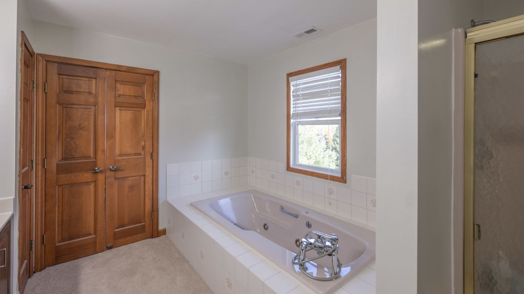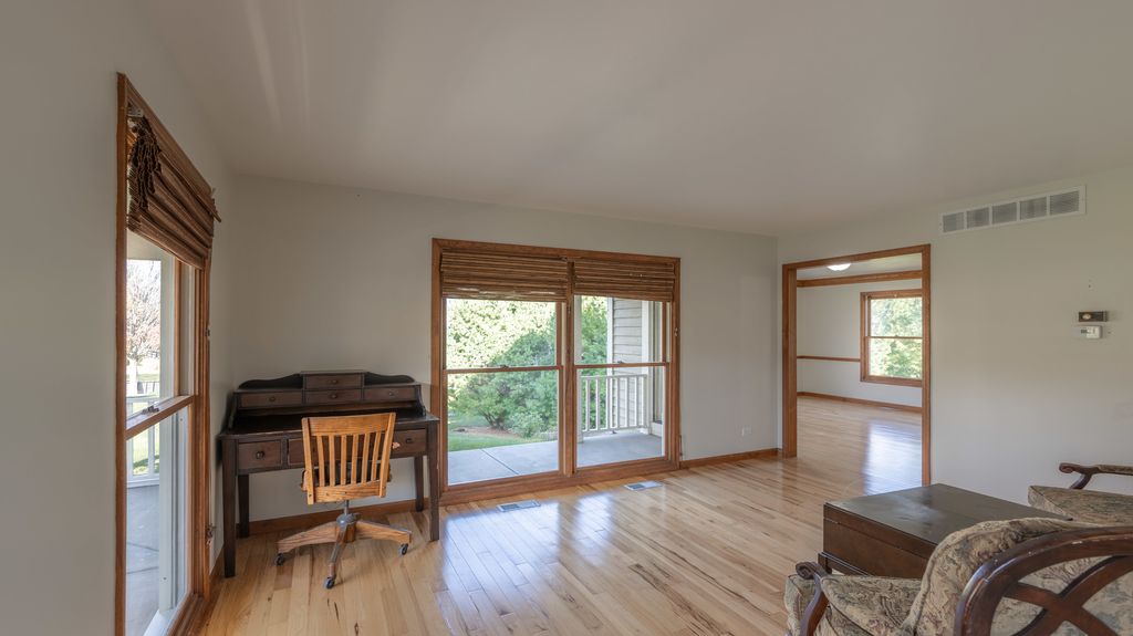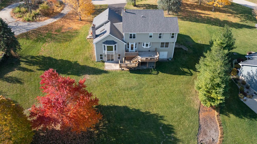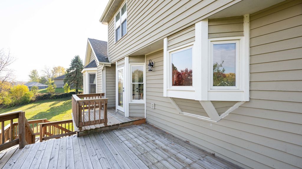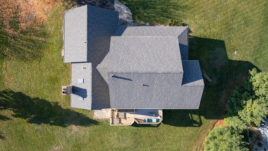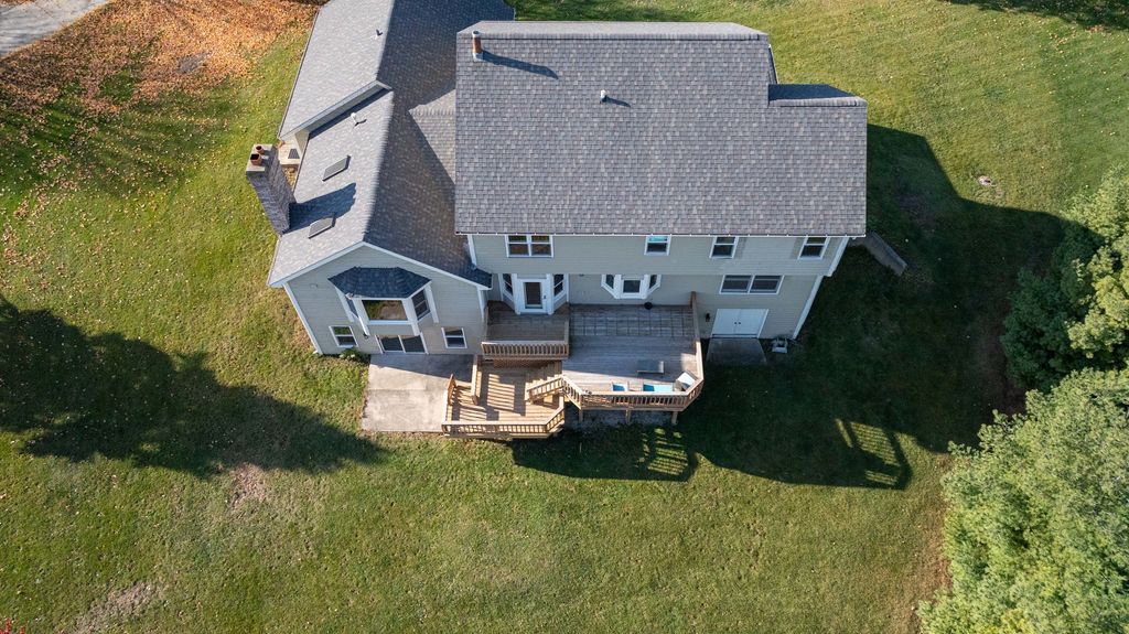 Expansive home nestled on a sprawling piece of land. The house itself has classic charm, with a design that complements the landscape around it. As you enter the home, you're greeted by an open-concept layout that flows seamlessly from one space to the next. The main living area is bright and airy, with high ceilings, soft natural light pouring through all the windows, and a central fireplace that creates a cozy focal point. The walls are painted in warm, neutral tones, while the flooring is a rich hardwood that adds texture and warmth throughout the space. The master suite is a private retreat. The room is expansive with windows overlooking the property. The en-suite bathroom offers a freestanding soaking tub, a separate shower, and dual vanities. The office space on the main level is surrounded by large windows giving a natural cozy feel anywhere you sit. The finished basement offers another bedroom and full bathroom along with sliding glass doors to step out into the beautiful backyard. The basement also offers a side entrance to store your lawn mower and equipment. With new carpet and paint through out the upstairs and basement this home offers a clean fresh look. Sit and drink coffee on the large front porch or multi level deck. This home is surrounded by peaceful views.