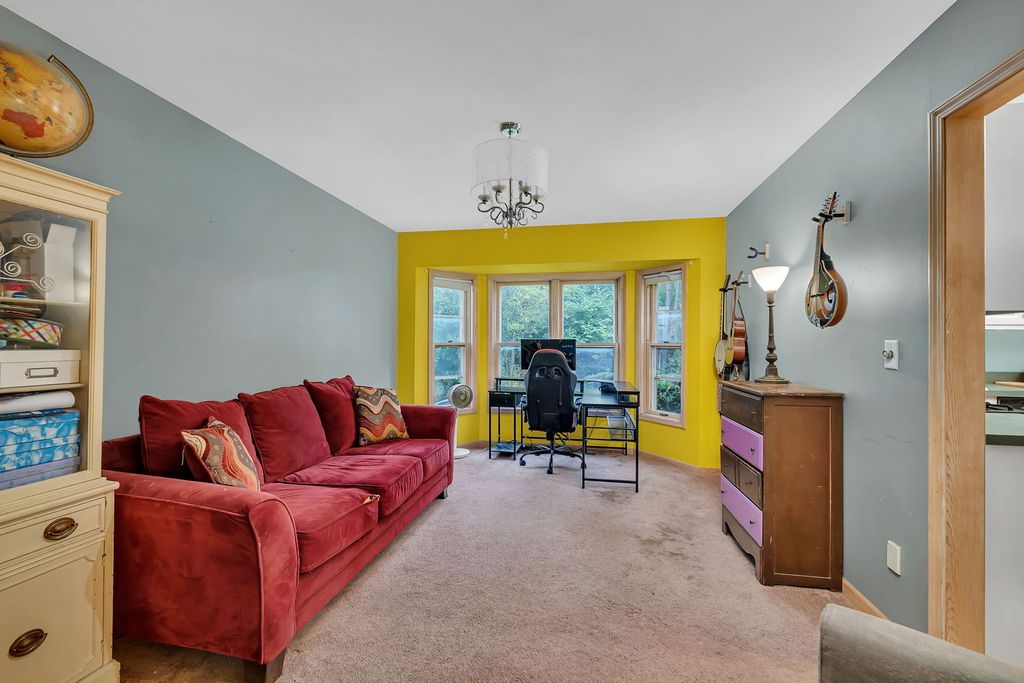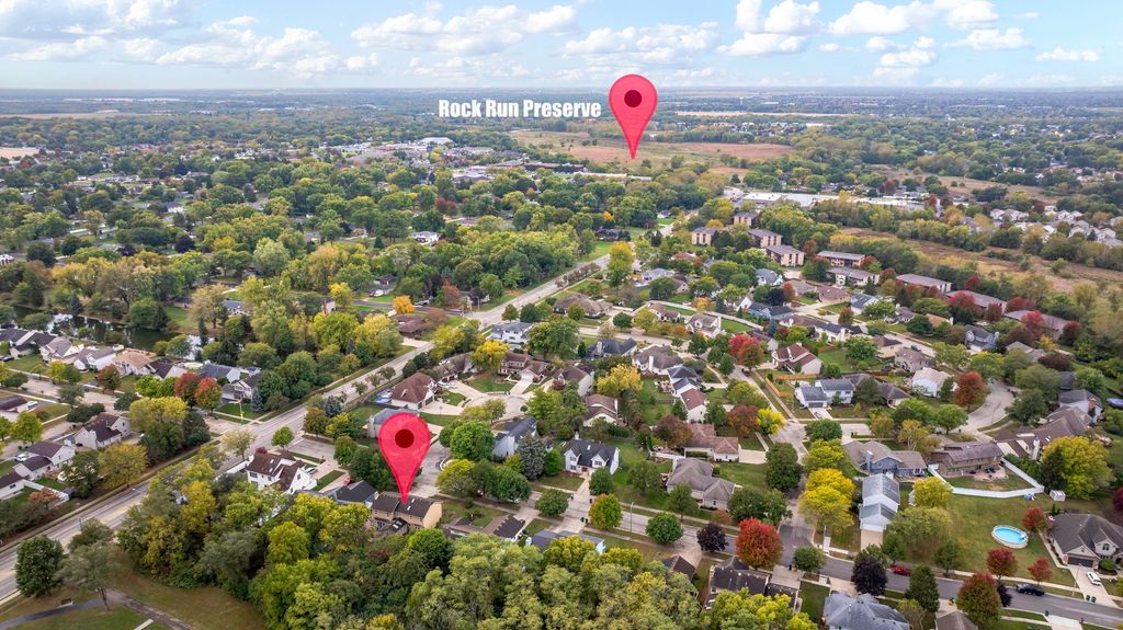Incredible value-priced below market. This spacious custom home in Pleasant Knoll offers nearly 3,000 square feet above grade plus a partially finished basement. With some paint, new flooring, and refinished hardwoods, this home has the potential to shine and become your dream home. The welcoming two-story foyer opens to a flexible floor plan designed for both everyday living and entertaining. The family room features a brick wood-burning fireplace, tray ceiling, and abundant natural light. A four-season sunroom with vaulted ceiling, skylights, and tile flooring overlooks the fully fenced yard and wooded Rock Run Greenway Trail, offering privacy and a peaceful setting. The kitchen provides ample cabinetry, an island, and an adjacent dining room, ready for your modern updates. A front room makes a perfect office or formal living space, and the main floor laundry adds convenience. Upstairs you'll find a spacious loft with built-in shelving and a luxurious primary suite with a vaulted ceiling, gas fireplace, dressing area, makeup counter, walk-in closet, and spa-like bath with soaking tub and separate shower. Additional features include six-panel wood doors, a large three-car garage, a basement with egress window, a newer roof (approximately 2015), furnace (2007), air conditioner (2017), and sump pump with backup system. Located in sought-after Troy School District and within walking distance to Rock Run Forest Preserve, this custom home offers space, privacy, and outstanding potential in an established neighborhood.