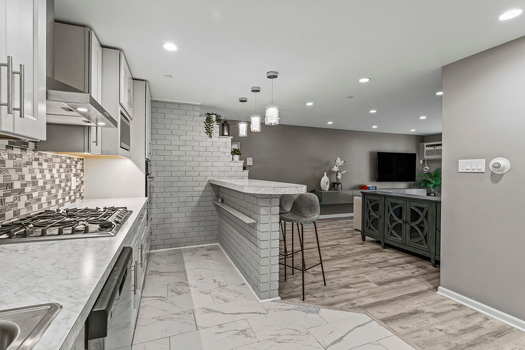 Welcome to this HGTV designer inspired 2 bedroom - 1 bath condo! Fully remodeled and kept in immaculate condition. Move in ready and available now! Upon entering, you'll find an inviting foyer with a brick accent wall and a spacious closet. The family room offers incredible open concept living, featuring a floating shelf entertainment center for added storage, stylish accent wallpaper, and direct access to an outside patio. The kitchen is equipped with custom cabinetry, stainless steel appliances, and a breakfast bar for additional seating. Master bedroom boasts a sleek, modern feel with a walk-in closet and custom organization. A spacious second bedroom also provides ample closet space. The beautifully updated bathroom includes elegant tile work, dual shower heads, and oversized closet space. Building amenities offer laundry facilities and available storage. The property is conveniently located near golf courses, shopping, dining and more! Completely rehabbed in 2022, featuring custom finishes, luxury vinyl flooring, custom window treatments throughout, electrical box/outlets. Kitchen appliances; refrigerator, oven, microwave, dishwasher (2023), Wall oven (2020), Windows, Patio Fence, AC unit, (2023). Both visitor and assigned parking (unit space #212) are included. Incredible buy in this price point. Stunning decor and a great layout! BE SURE TO WATCH THE FULL LENGTH VIDEO!
