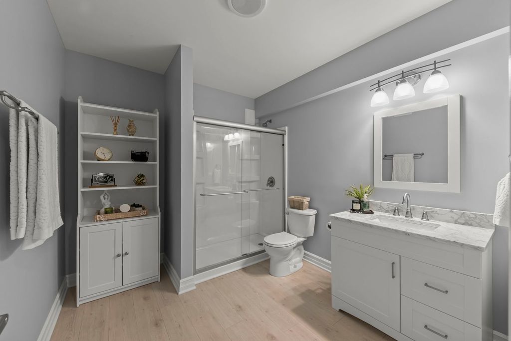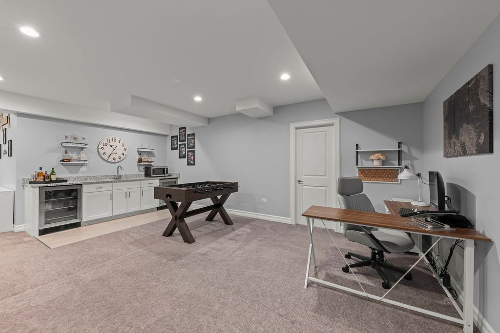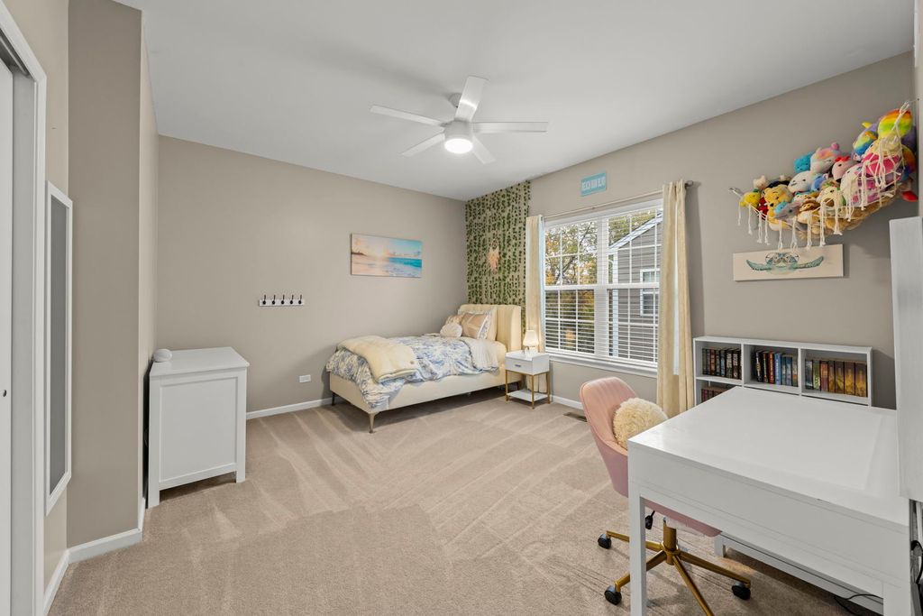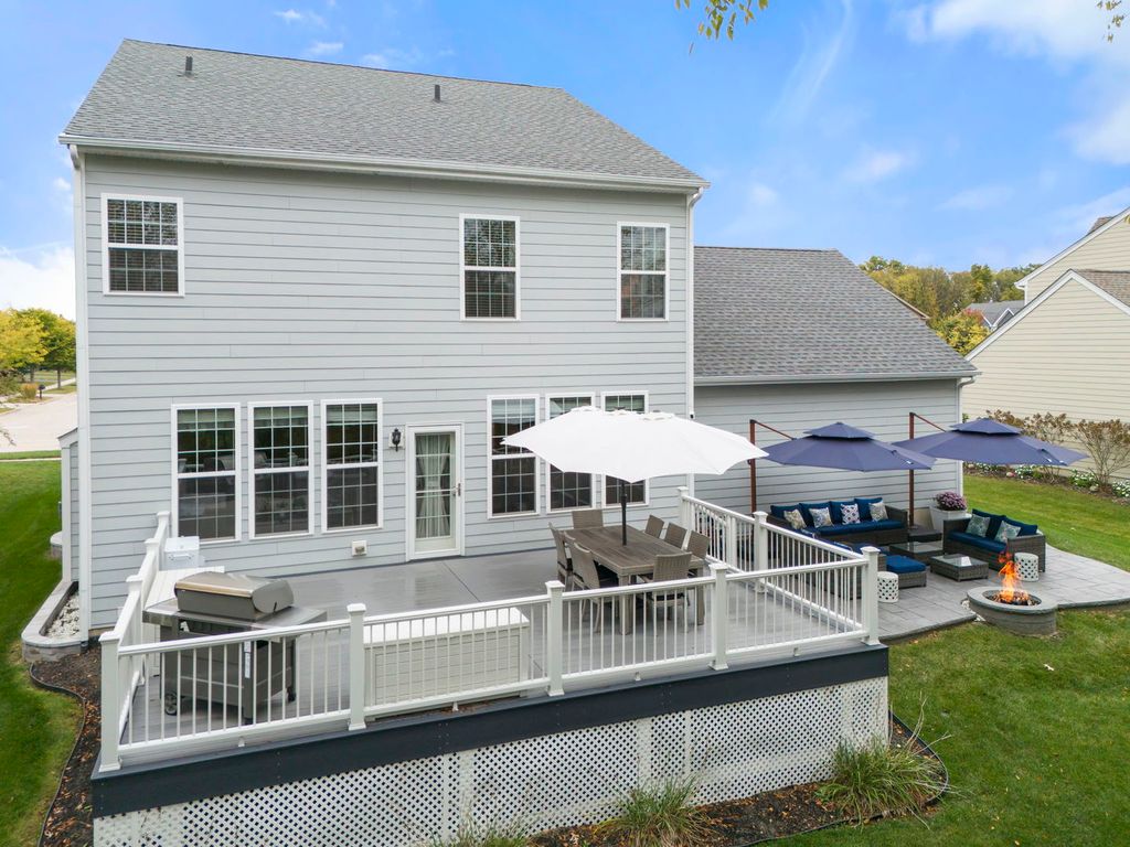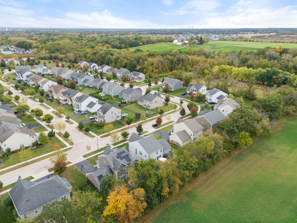 Nestled within the highly sought-after Bowes Creek Country Club and top-rated School District 301, this 4-bedroom, 3.5-bath home sits on a premium lot with no direct rear neighbors, offering tree-lined views and the kind of privacy that makes everyday living feel elevated. From the moment you step onto the welcoming front porch, you'll feel the warmth and attention to detail that define this home. Inside, hardwood floors flow throughout the main level, highlighted by crown molding and natural light pouring through expansive windows overlooking the serene backyard. The kitchen is the true heart of the home - designed for both gathering and entertaining - featuring 42-inch cabinetry, stainless-steel appliances, a large center island, and generous counter space. It opens to a spacious gathering room with a direct-vent fireplace, and a wall of windows completes the space, showcasing beautiful backyard and deck views. Step outside to your own retreat with a Trex deck, stamped-concrete patio, built-in firepit, and irrigation system, all surrounded by mature trees and peaceful views. With no direct rear neighbors, it's a serene place to relax or entertain. Upstairs, the primary suite feels like a private getaway with dual sinks, a soaking tub, a separate shower, and an oversized walk-in closet. Three additional bedrooms are generously sized, each with large closets - two are walk-ins. The second-floor laundry, a builder upgrade, adds everyday convenience. The finished basement expands your living space with a custom wet bar, built-in cabinetry, full bath, and flexible areas for entertaining, fitness, or relaxing. A 2.5-car garage and custom mudroom with built-in cubbies keep everything organized and out of sight. Located in one of Elgin's most desirable communities, this home combines refined finishes with a functional design and a setting that's both private and convenient - close to parks, walking paths, and everyday amenities. As part of the Bowes Creek Country Club neighborhood, residents enjoy easy access to one of the area's premier golf courses, scenic winter trails for snowshoeing, and an on-site dining option.