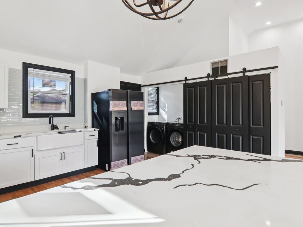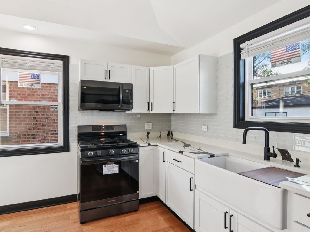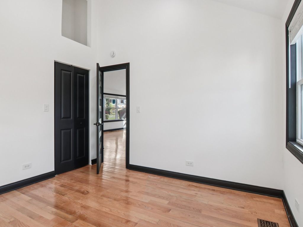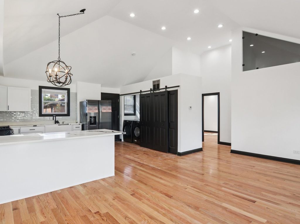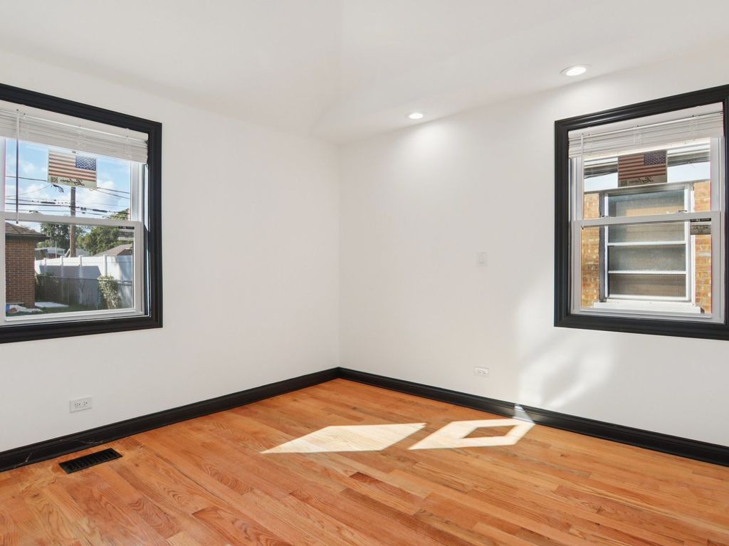 Contemporary and open-concept house now available in Bellwood. This Exceptional single-story modern brick home features Cathedral Ceilings two bedrooms and one bathroom, ideal for comfortable living. The interior boasts beautiful hardwood floors throughout, contributing to its sleek and modern aesthetic. Situated on a quiet street, the property offers a peaceful residential environment. Additionally, the large rear yard provides an excellent space for entertaining, complemented by a detached two-car brick garage for convenience.