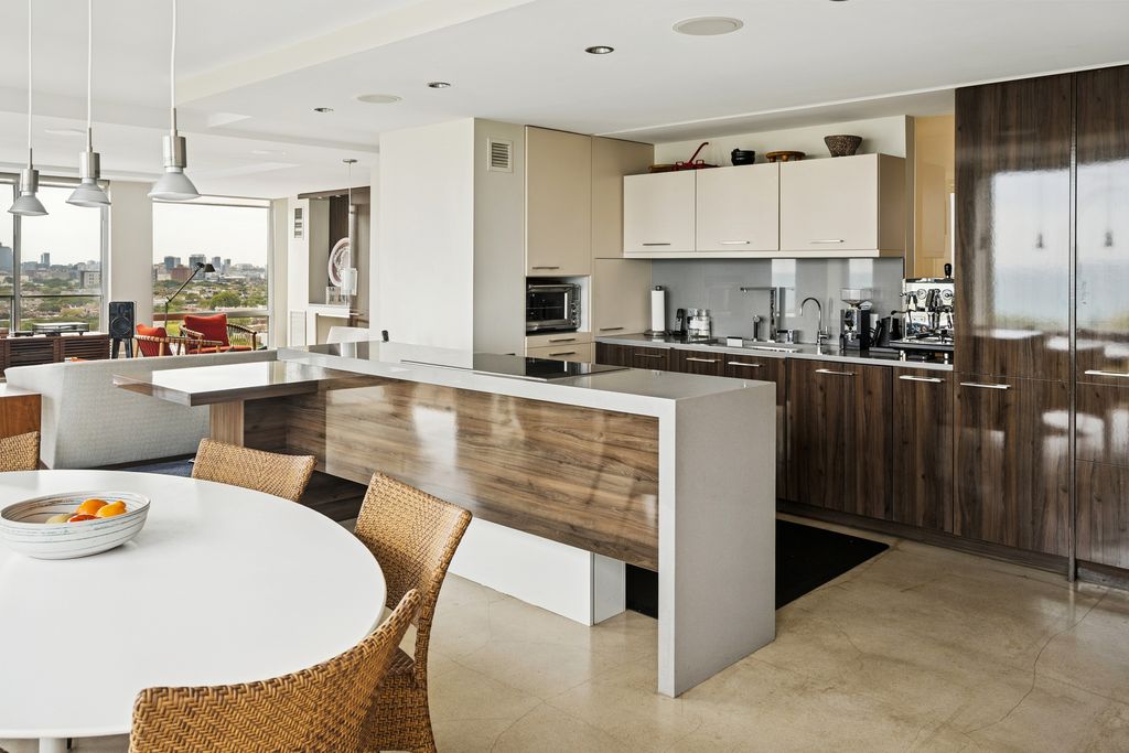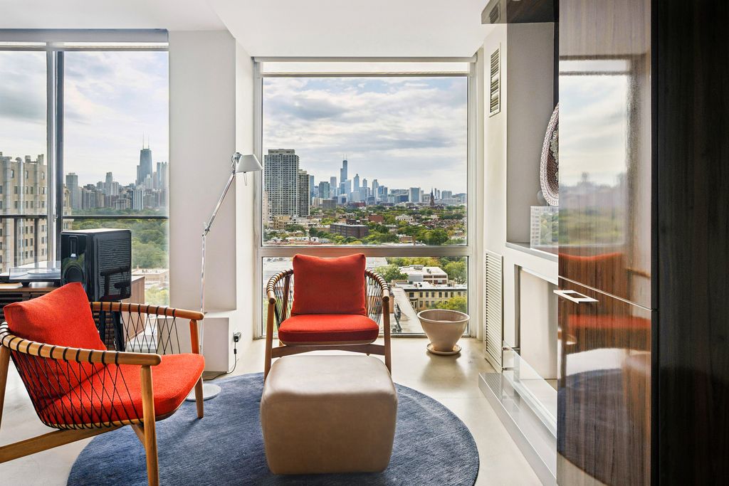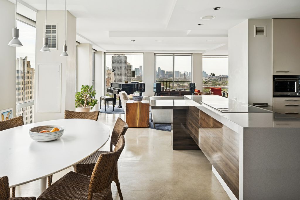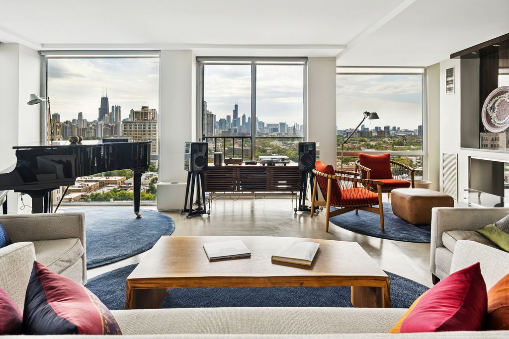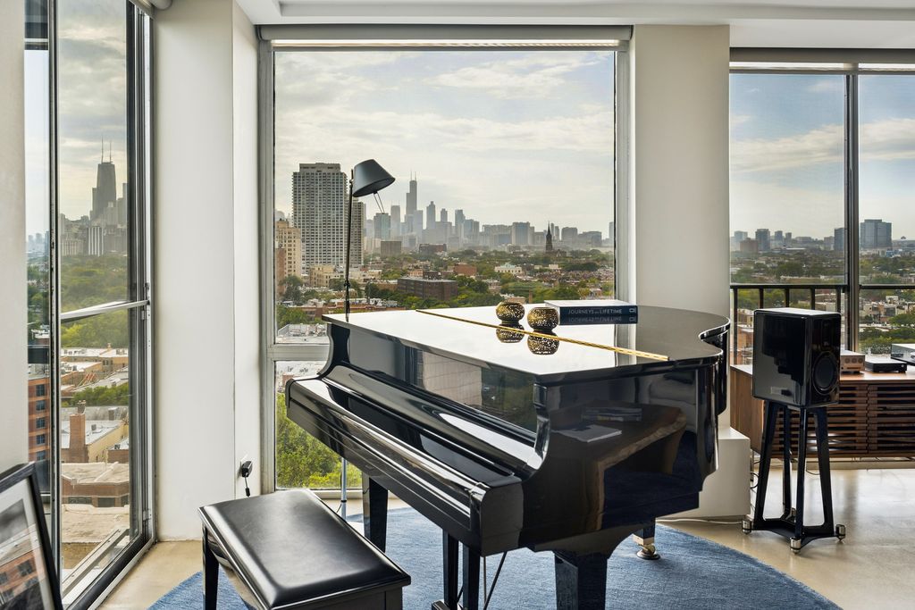 FULL WALK THRU ON VIRTUAL TOUR BUTTON. Three condos have been seamlessly combined to create a spectacular 3,350 sq. ft. four-bedroom residence showcasing world-class views of the lake, park, and skyline. This striking contemporary home features a clean, modern design with exceptional flow and generous, flexible living spaces-all framed by floor-to-ceiling windows capturing breathtaking panoramas. Polished concrete and hardwood floors, European-style baths, and designer lighting elevate the aesthetic throughout. The northeast corner living and dining area offers a fireplace, custom built-ins, electric shades throughout and stunning natural light. The chef's kitchen impresses with Leicht cabinetry, Thermador induction cooktop, Bosch dishwasher, Dacor ovens, a breakfast bar, and ample space for a dining table.The luxurious primary suite includes a custom walk-in closet and spa-like bath with wall-mounted Duravit sinks, airjet soaking tub, and steam shower. Additional highlights include three more bedrooms and baths, a family room, a den/office, and in-unit laundry. Valet and self-parking available. Ideally located within the highly sought-after Lincoln Elementary School District.