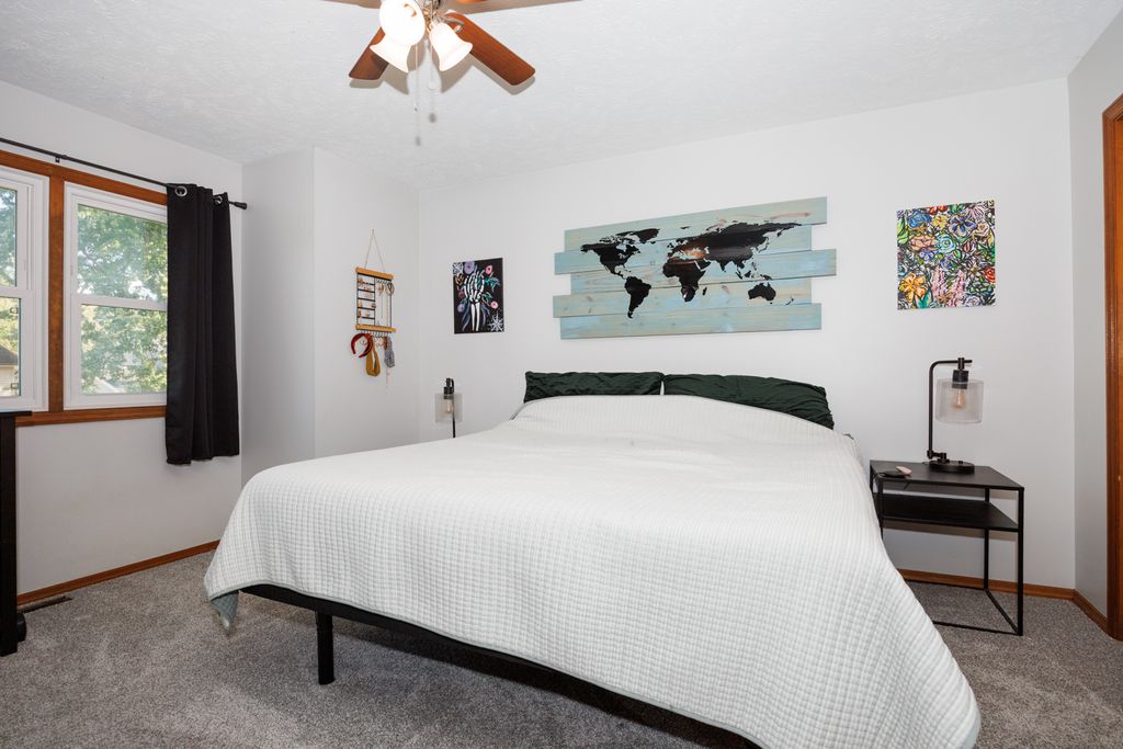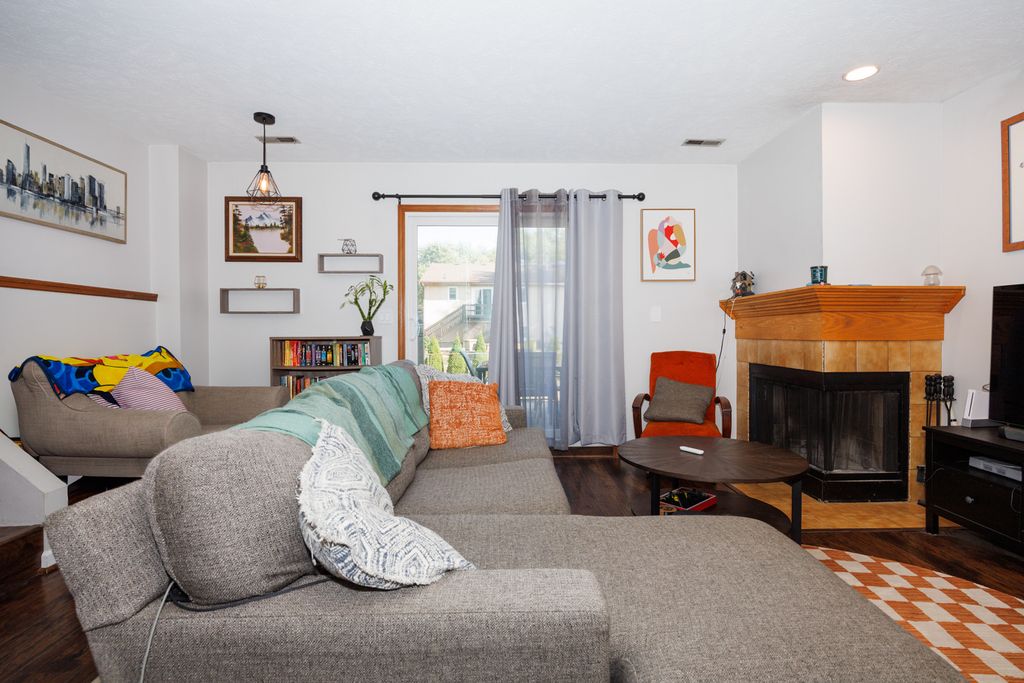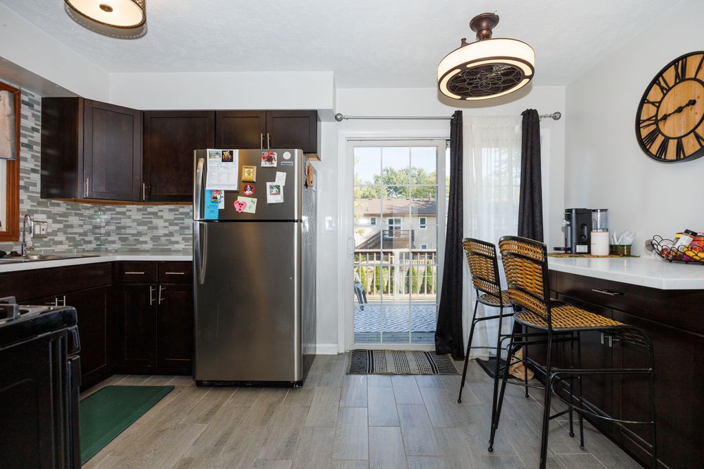 Conveniently located near elementary school, shopping and dining. 3 bed, 1.5 baths. Updated kitchen with stainless steel appliances, quartz countertops, and eat-in nook. Two multi-purpose living spaces with updated flooring. Main bath features tiled shower/tub surround. Walkout lower level leads to the backyard patio. Lower level also features a fireplace. Fully fenced backyard. *Recent Updates: New windows and new lower level exterior sliding door in 2023. Bedrooms and main bath doors updated to solid core. Primary bedroom carpet is new this year.