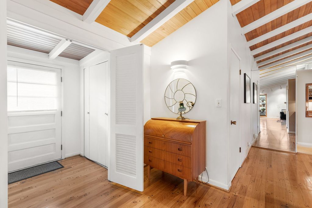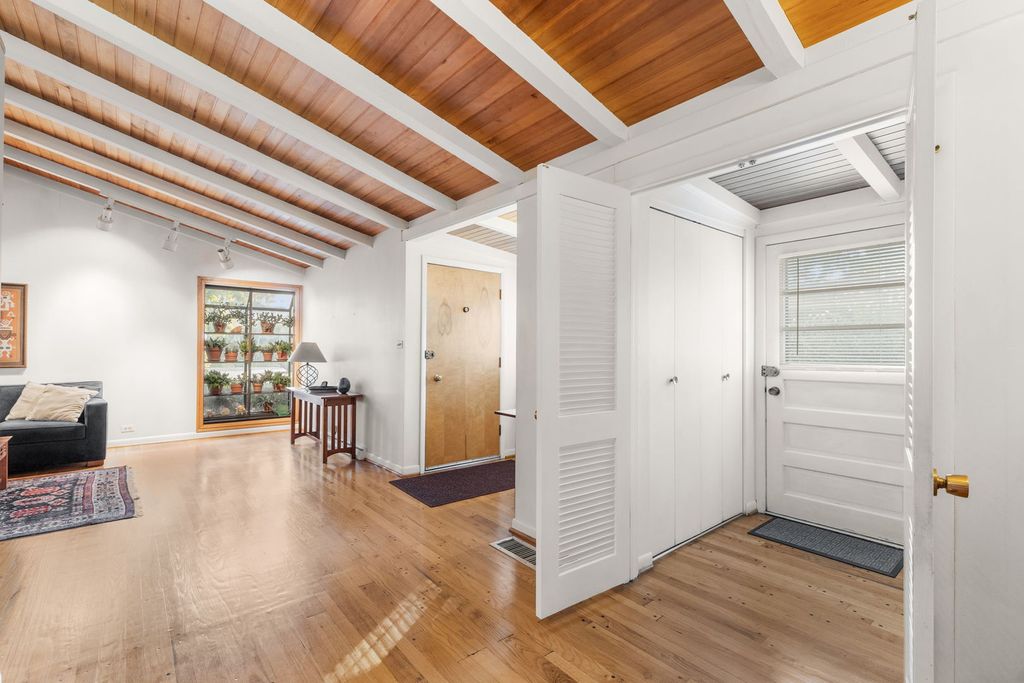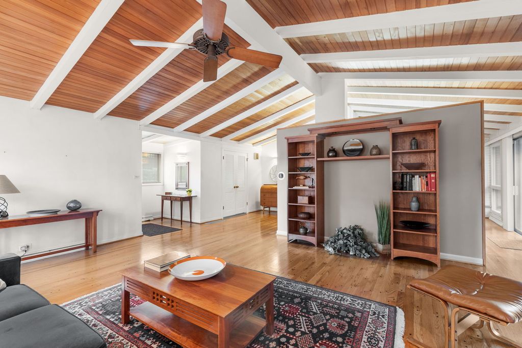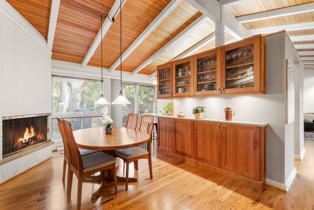 Wonderful Mid-Century Modern 3 BR, 2 BA Ranch with fantastic open feeling in sought-after convenient location featuring volume ceilings, wood floors, private primary suite with bath, updated kitchen with Shaker style wood cabinets & stainless-steel appliances including Sub-Zero refrigerator, fireplace in charming dining room, sliding doors to inviting patio, great backyard, attached 2 car garage, huge basement and more. Seller has updated and maintained the house well but would prefer an "as is" sale due to the seller's circumstances. Close to award-winning schools, parks and transportation. Don't miss this opportunity!