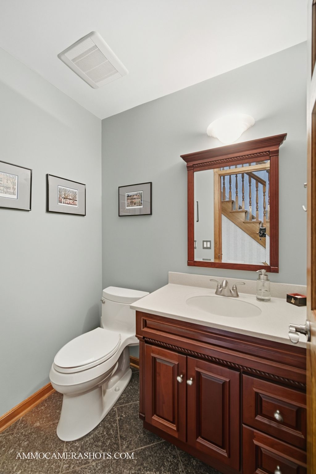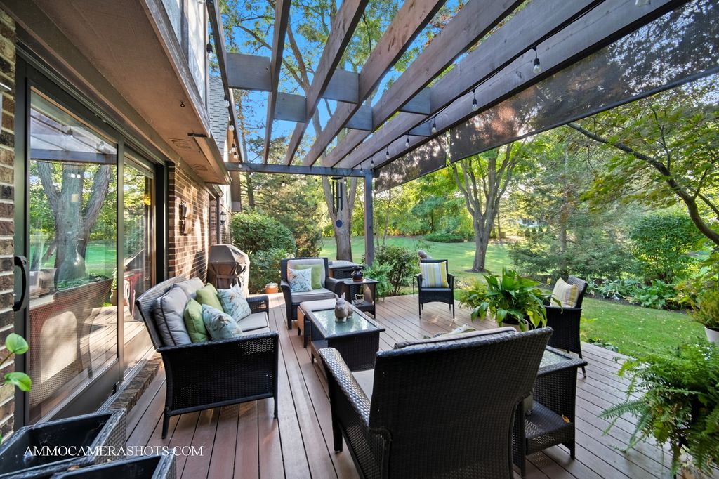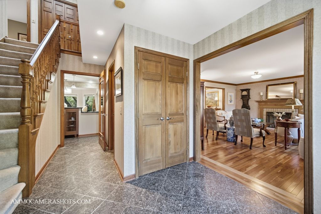 Tucked away on a quiet cul-de-sac in the popular Aintree subdivision, this classic East Side St. Charles home sits on a beautifully landscaped half-acre lot with mature trees and great outdoor space. Inside you'll find a warm and inviting layout featuring cherry hardwood floors, three fireplaces, and a comfortable family room with beamed ceilings and Pella doors leading out to the patio and pergola. The kitchen was thoughtfully renovated with quality finishes including cherry cabinets, Silestone counters, Sub-Zero and GE Monogram appliances, and a cozy eating area with heated floors and a butler's pantry. Upstairs, the primary suite offers a relaxing bath with marble finishes, heated floors, a steam shower, and a cast-iron soaking tub. The second-floor hall bath features designer tile work. The finished lower level adds extra living space, and the home has seen numerous updates over the years including Pella windows, roof, siding, and mechanicals. The location is ideal-just a short distance to the Norris Recreation Center, schools, and parks. A wonderful blend of charm, quality, and location in one of St. Charles' most desirable neighborhoods.
