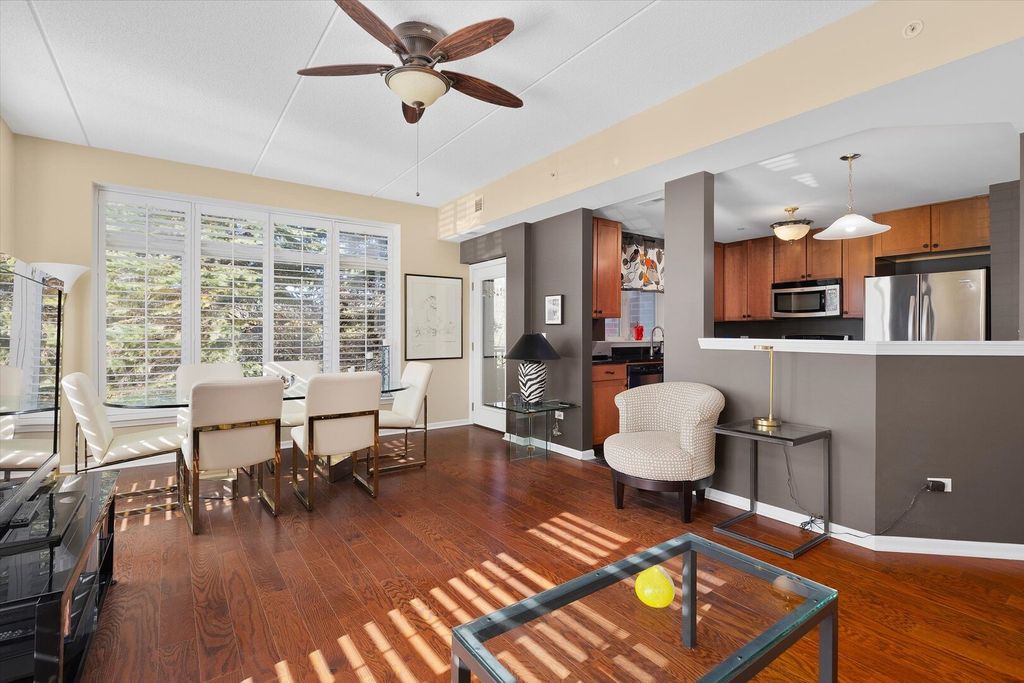 Discover the perfect blend of privacy, light, and comfort in this beautifully maintained corner, end-unit condo! Ideally situated on the first floor, at the very end of the hallway, this home offers exceptional peace and quiet. Enjoy a bright and open floor plan filled with natural light streaming through multiple windows complemented by stylish plantation blinds. Elegant flooring throughout the spacious living and dining areas which flow seamlessly to a private patio with screen door. The master bedroom includes a private bath and walk-in closet and there is a full in-unit laundry room with washer & dryer. Additional highlights include a dedicated garage parking space, and private storage locker. Staircase is nearby for quick access to garage from unit. Located in a well-kept, peaceful community; this desirable end-unit offers an unbeatable combination of privacy, space, and effortless living. Close to restaurants, shopping and highways. Agent related to seller.