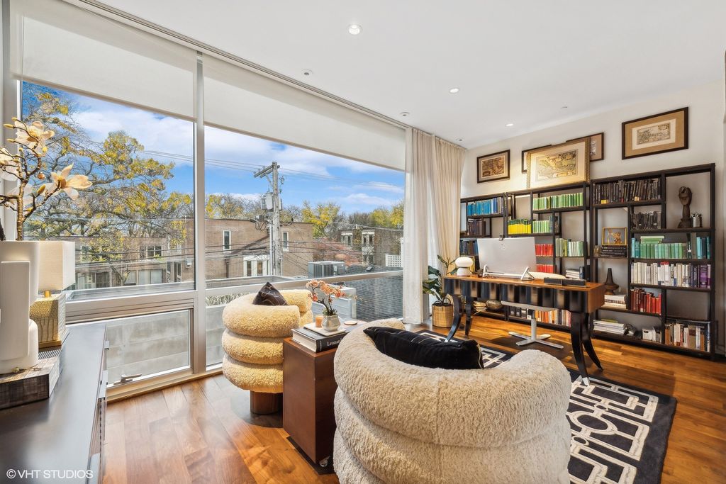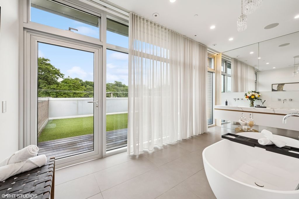 Located in the heart of Lincoln Park on one of Chicago's most coveted tree-lined blocks, 1837 N Fremont is a custom-crafted single family home originally constructed by Chicago's boutique luxury home builder, Crescent Rock Builders and designed by Studio Dwell. In its recent, full main floor renovation led by awarded Chicago designer Donna Mondi, walls were removed, floors redone, a new fireplace installed, artisan-crafted wallpapers were applied, and more. The kitchen also underwent a full rehaul with no detail spared - new Miele appliances, custom quartz, hand-polished lacquer cabinetry abound. The top-of-the-line kitchen leads to an expansive family room, complete with a NanaWall glass door system which opens the space entirely to welcome the rear terrace for impeccable indoor/outdoor living. As you enter the home, the multi-level living room meets the stair atrium, exemplifying the home's open aesthetic. The rarely-found, two-story front window allows for an abundance of natural light throughout the home. Wide plank walnut flooring and ultra high-end finishes span each level. The second floor offers 3 bedrooms, a full bath and laundry room, followed by a serene primary suite located on the home's third level. The primary suite features a dressing room, walk-in closet, private green roof terrace, and luxurious bathroom complete with steam shower and a Miele stainless stackable washer/dryer. Up to the top floor is the home's rooftop, boasting absolutely stunning views of the city. The rooftop terrace is fully equipped with a custom, stainless steel outdoor chef's kitchen including a dumbwaiter that travels down to the home's main kitchen--the definition of rooftop entertaining with ease. The modern residence's lowest level houses a media room, lounge, full guest suite, and a climate controlled wine cellar following a stone garden. Furthermore, 1837 N Fremont features whole-home automation by Savant System, hydronic solar panels, hydronic heated floors on all levels, and a radiant-floor heated two-car garage that has its own, additional roof deck. This stunning home in an unbeatable location--only one block from Armitage with endless shopping and dining options--is unmatched when it comes to complete sophistication and modern comforts.