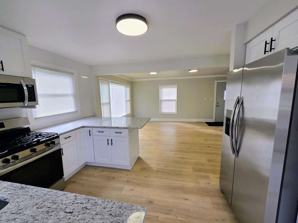 Welcome to your dream home! Situated in a peaceful neighborhood, this charming residence has been completely remodeled, offering four bedrooms and a large bathroom. The sunlit living room invites relaxation and is perfect for entertaining guests. The open-concept kitchen, featuring sleek granite countertops and new stainless-steel appliances, is a cook's dream come true. The largest bedroom serves as a private sanctuary with ample space, while the three additional bedrooms provide comfort for other occupants or guests. The stylishly renovated bathroom, equipped with modern fixtures and finishes, caters to all bedrooms seamlessly. A huge basement with laundry allows for plenty of room to spread out. The expansive backyard is perfect for outdoor activities and gatherings, complemented by a large side deck and rear patio with a pergola. Conveniently located near schools, parks, shopping centers, and public transportation, this home ensures that all essentials are within easy reach. Don't miss out on the opportunity to own this stunning home. Schedule a viewing today and make this house your forever home!